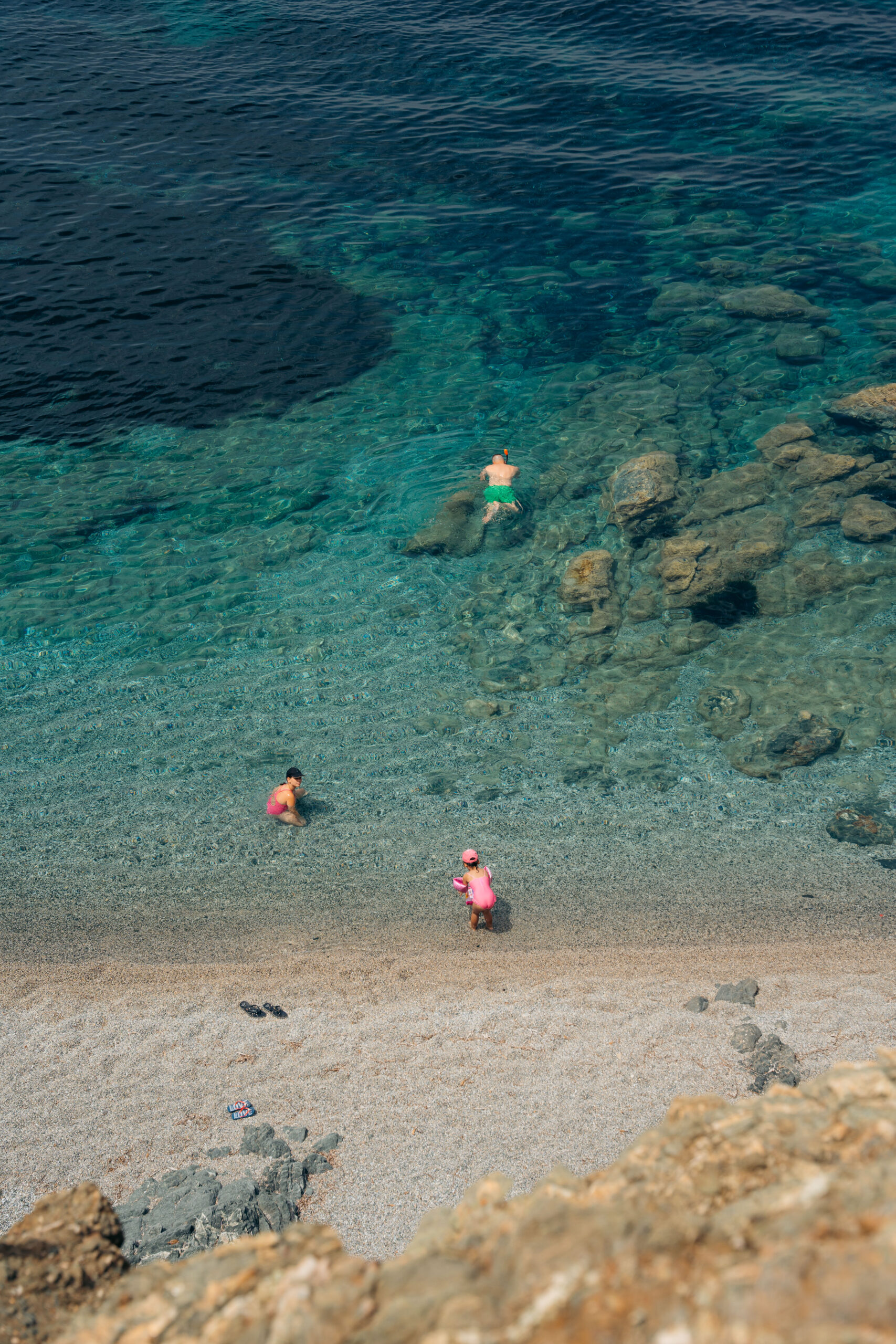 Vlychadia Beach combines natural beauty with several amenities for fun and relaxation. Divided into two sections, one pebbly and the other sandy, it has relatively shallow waters ideal for families with young children. After a swim, visitors can relax in the shade of trees or try both local and other special dishes at the nearby taverns and restaurants. Behind the beach, there are rental rooms and a small museum that narrates the history of sponge diving and its connection to the island. The seabed in this area is renowned for its beauty, attracting spear fishers and snorkeling enthusiasts.