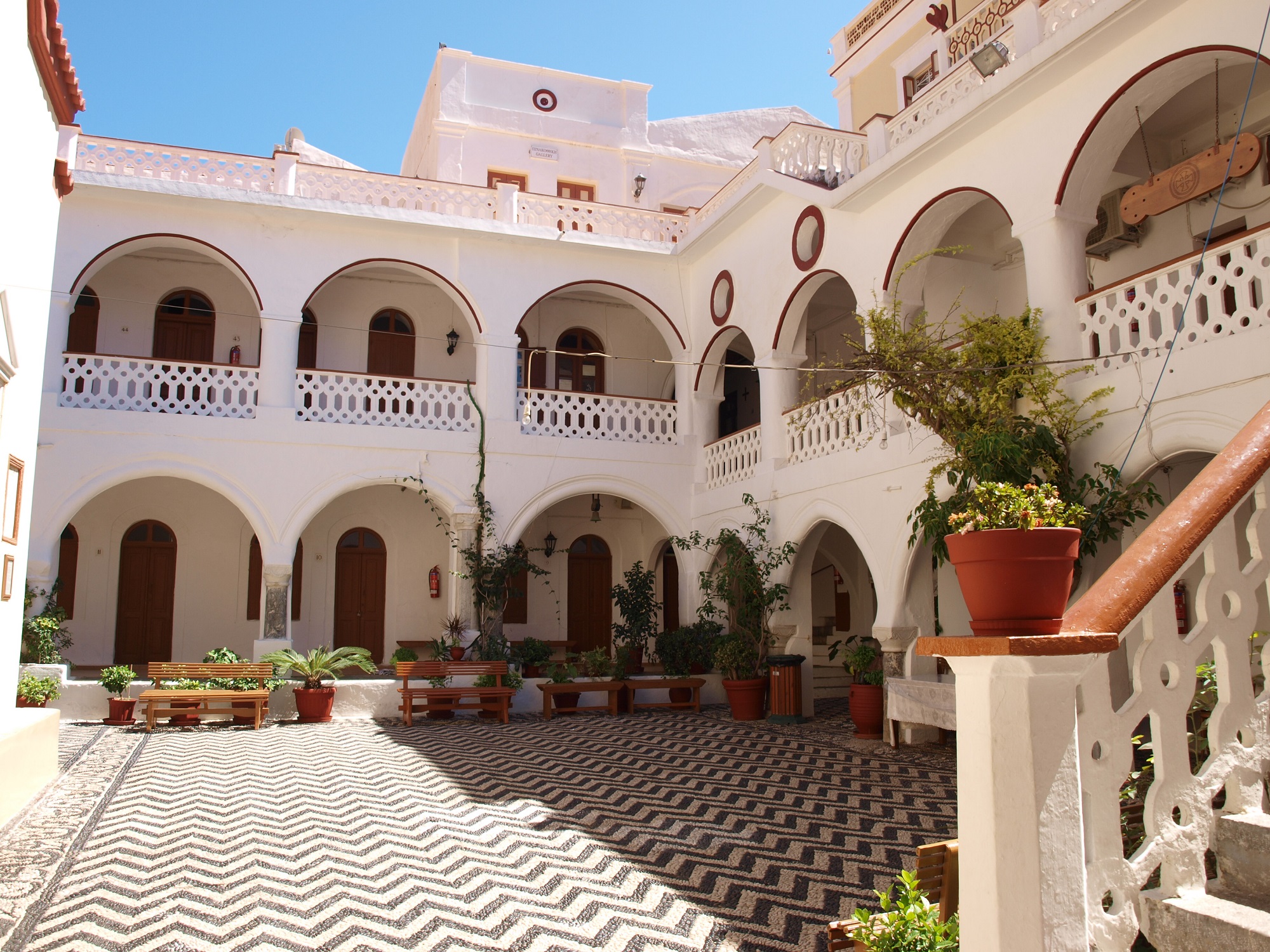 Aliki hotel, a seaside neoclassical mansion on the edge of Gialos, is one of the finest buildings on the island. Its features include stylish furniture, spacious rooms with old brass beds, and wooden panelling.