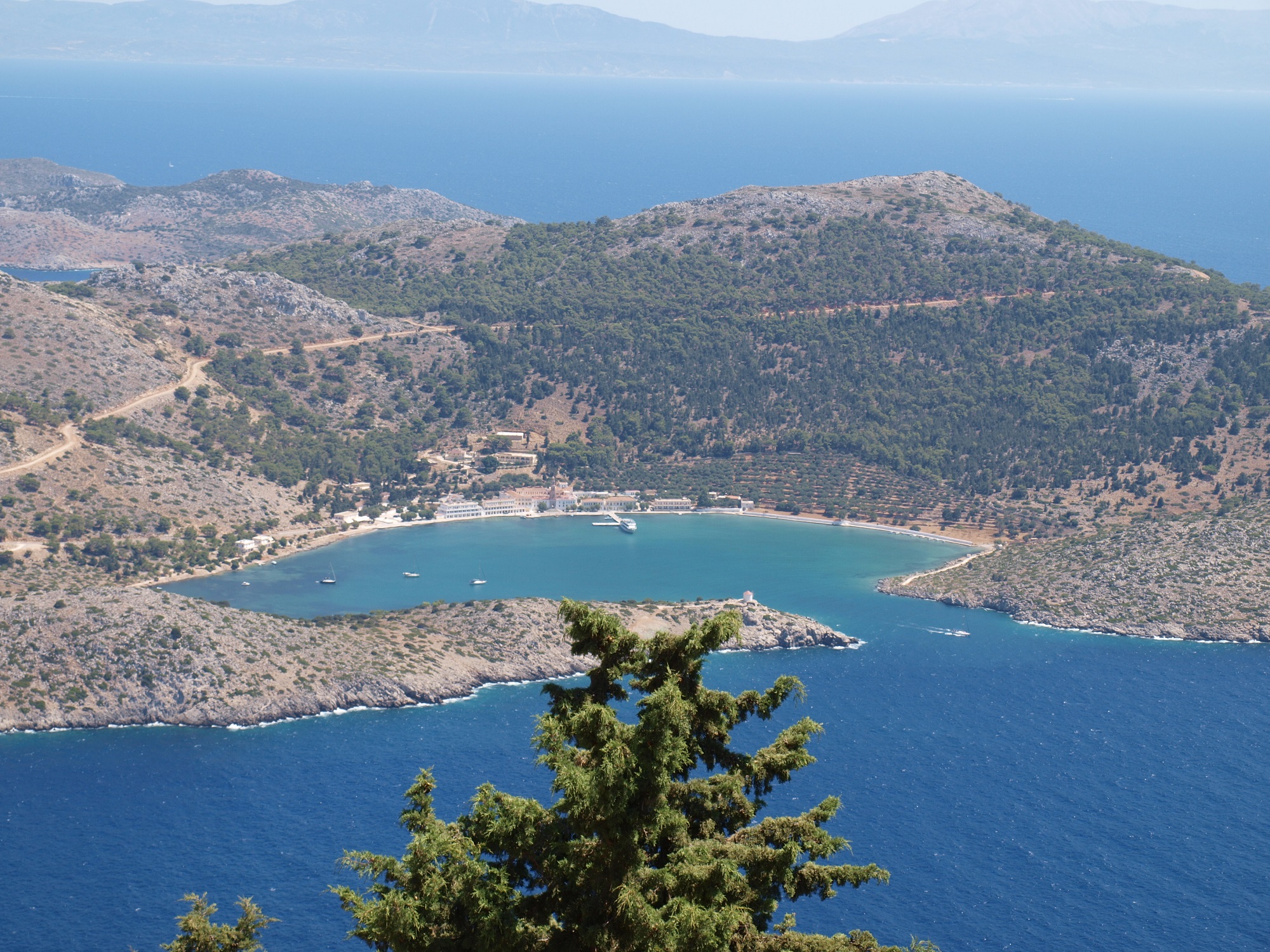 If interested in discovering the island on foot, the best trekking trail runs from Hora, the main town, to Panormitis. Many lush spots ideal for relaxation are encountered along the trail, as are numerous churches as well as the Megalos Sotiris monastery. From this location, take a detour leading to the Kourkouniotis area, within an idyllic cypress forest. The area features eleven restored traditional stone presses.