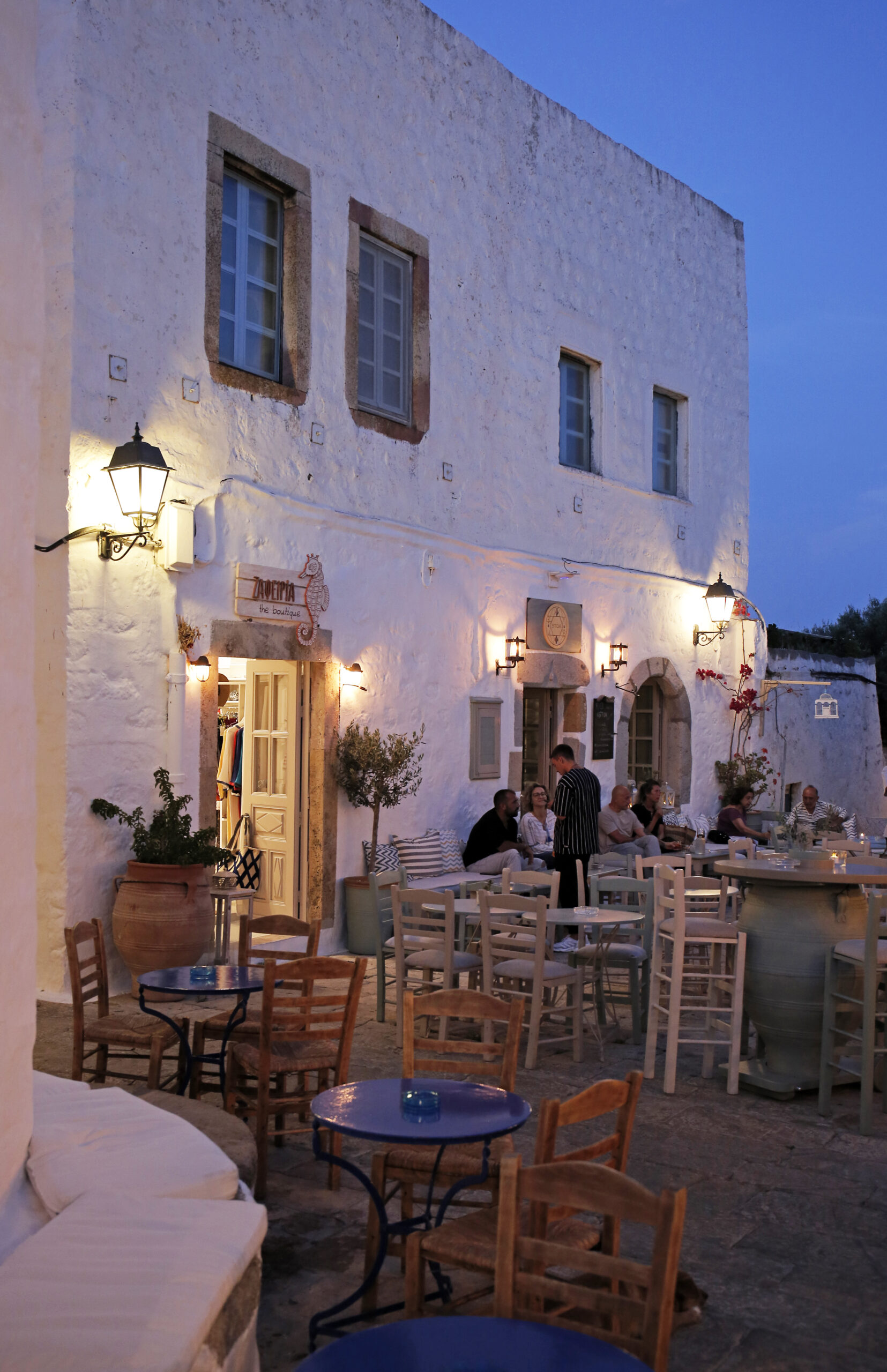 Wandering through Hora’s narrow lanes feels like stepping into a fairytale or traveling back through time. En route to the monastery, you’ll pass magnificent mansions such as those of Vardikos, Paleologos, and the Fondis family (known locally as the “House of Lions”), as well as the homes of Valvis-Koutsanellos and Nikolaidis. The picturesque Agia Levia square, truly the heart of this cosmopolitan and historical village, features the venerable Simantiris mansion and the grand Malandrakis estate.