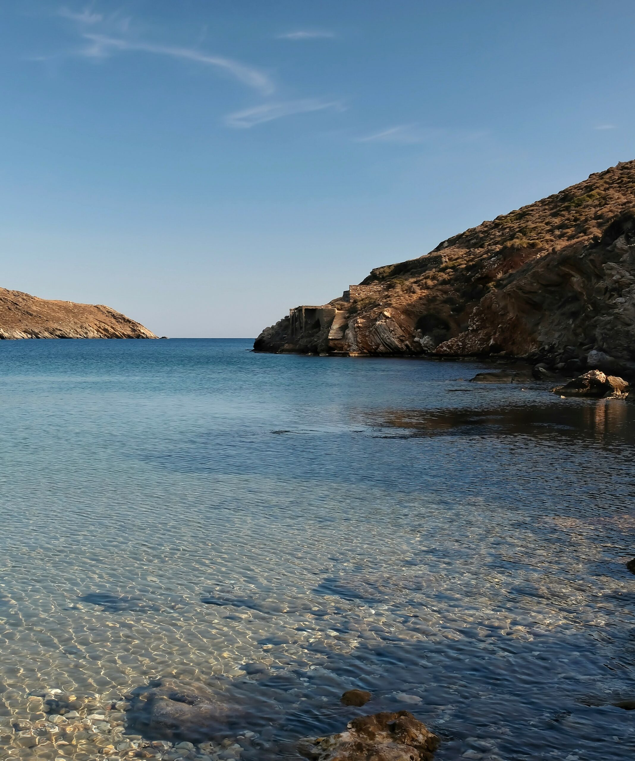 This small beach is hidden in a rocky cove on the western coast. It is sandy with turquoise waters and is accessible by road. There are no facilities, so bring your own food and beach equipment with you. We recommend staying until late to enjoy the sunset. It is 6 km from Hora.