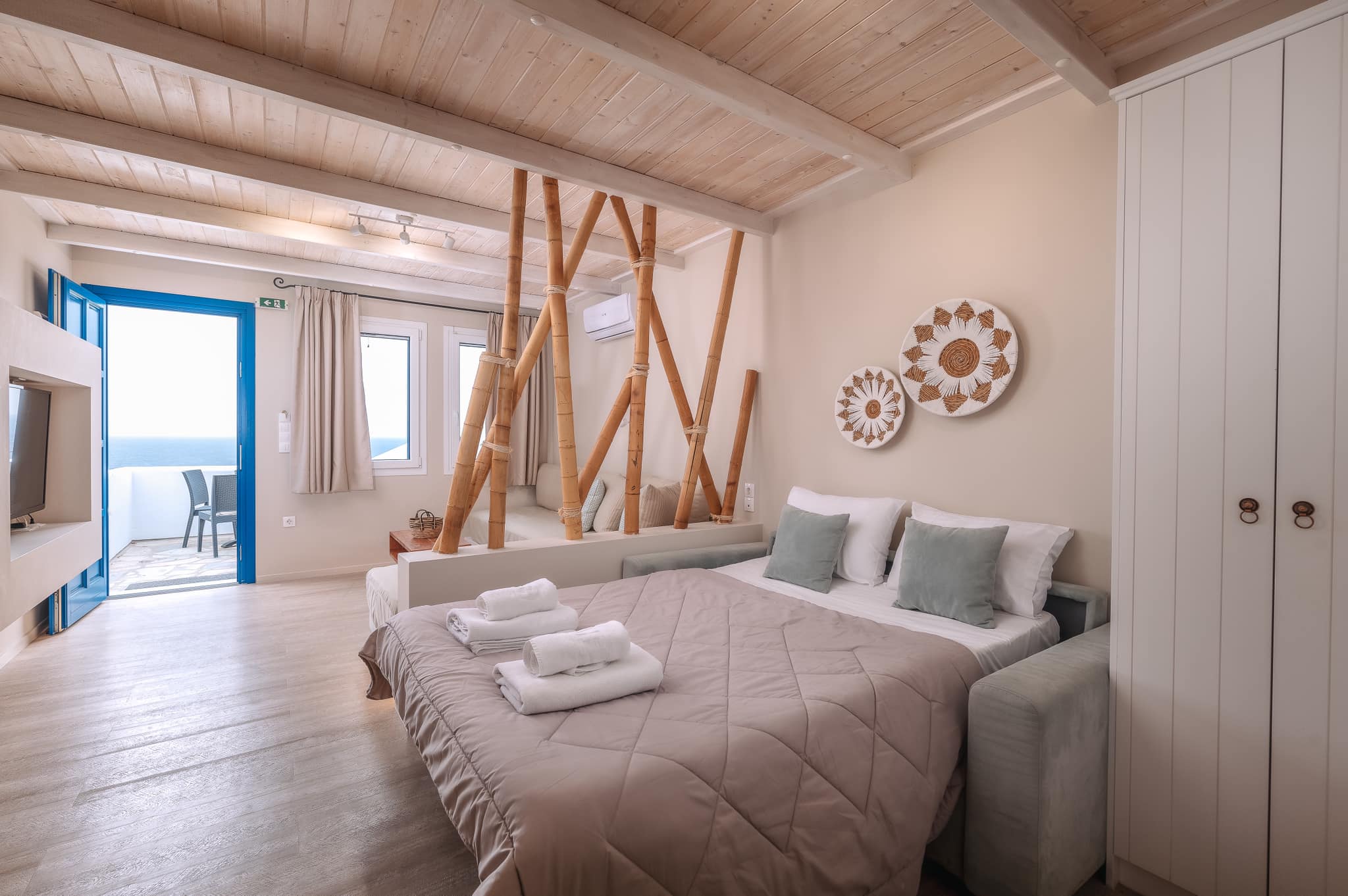 Stay: Phāea Blue for its tranquil, premium, activity-friendly location; adults-only Acro Suites for rugged landscape just a short drive from Heraklion.
