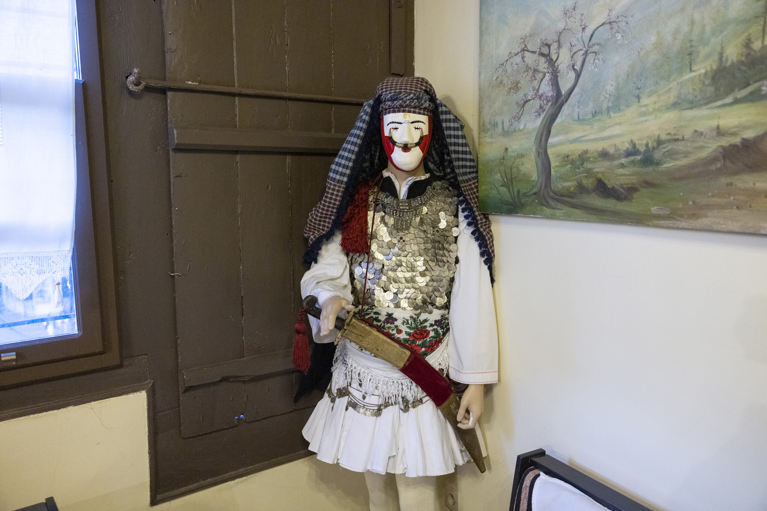 “When the resistance fighters wanted to descend from the mountain and enter the city to visit their kin and stock up on necessary supplies, they would dress up as “Genitsaroi”. It was crucial not to be recognized, so they wore the “Prosopo” and to show their peaceful intentions, the entire group would go to the town hall dressed as “Genitsaroi” and wearing their “Prosopo” with their leader at the forefront. The role of the leader was to negotiate with the “Mountiris” the governor and he was the only one who uncovered his face and confirmed on behalf of the group that they were Nausaians and had come with friendly intentions for a few days before returning to the mountain.