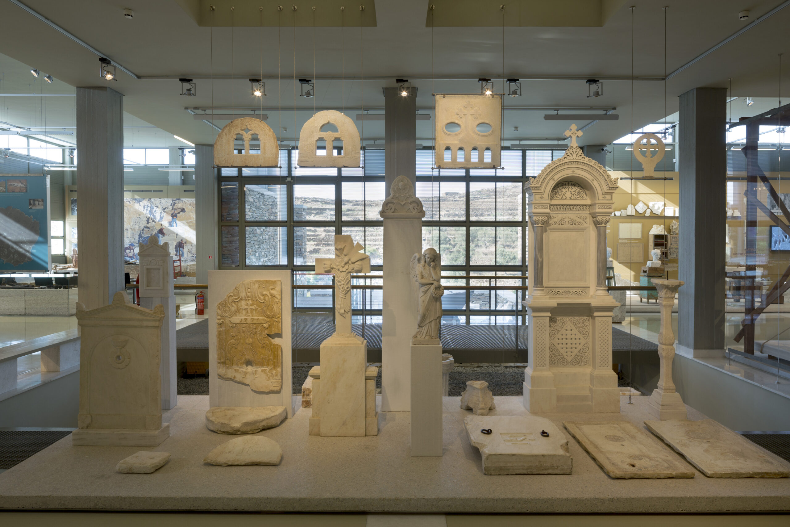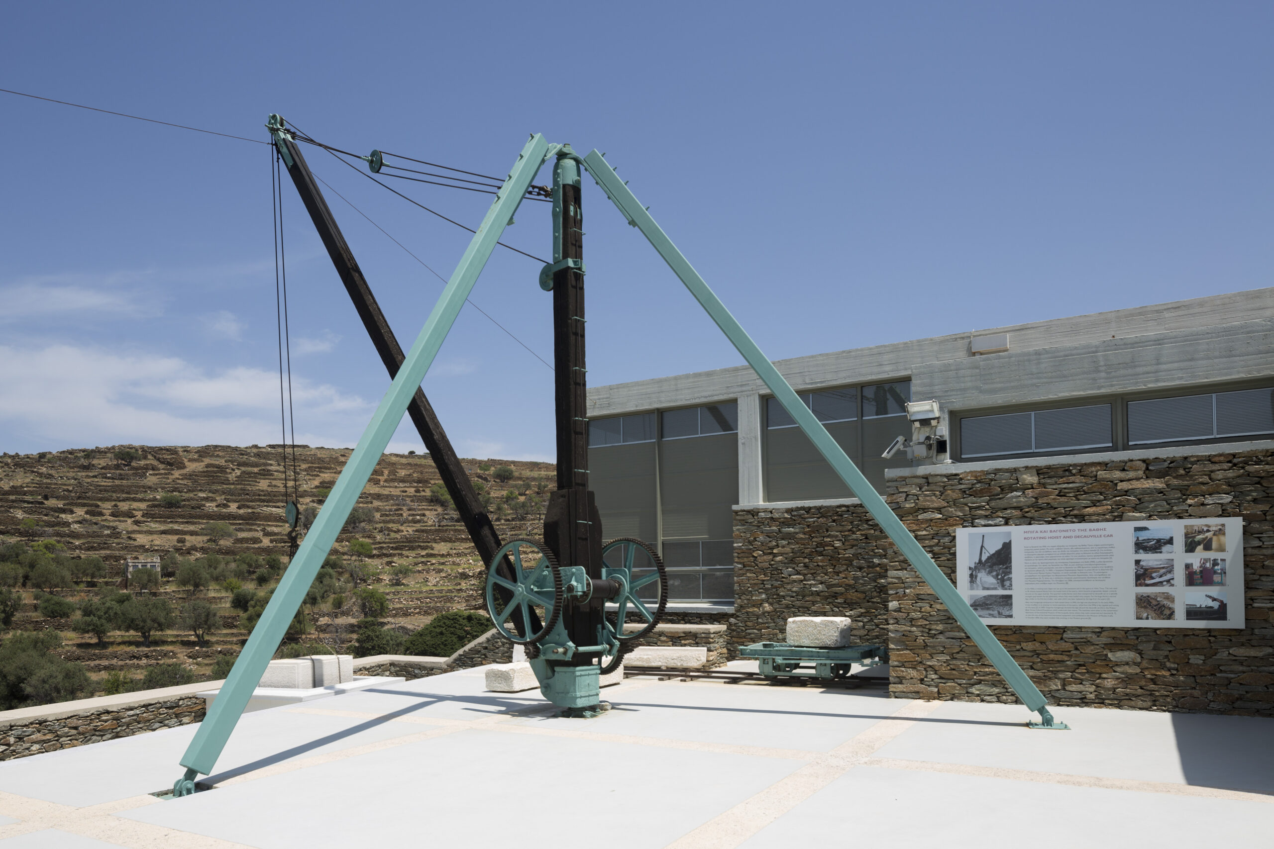 The museum’s outdoor areas feature a gigantic hoisting machine that was used to move blocks of marble, a small trolley for marble block transportation from the Vathi quarry, as well as a scoop from the Patela quarry. Inside the museum, ecclesiastical, secular, funerary and everyday objects reveal the possibilities of marble as well as the dexterity of the island’s craftsmen.