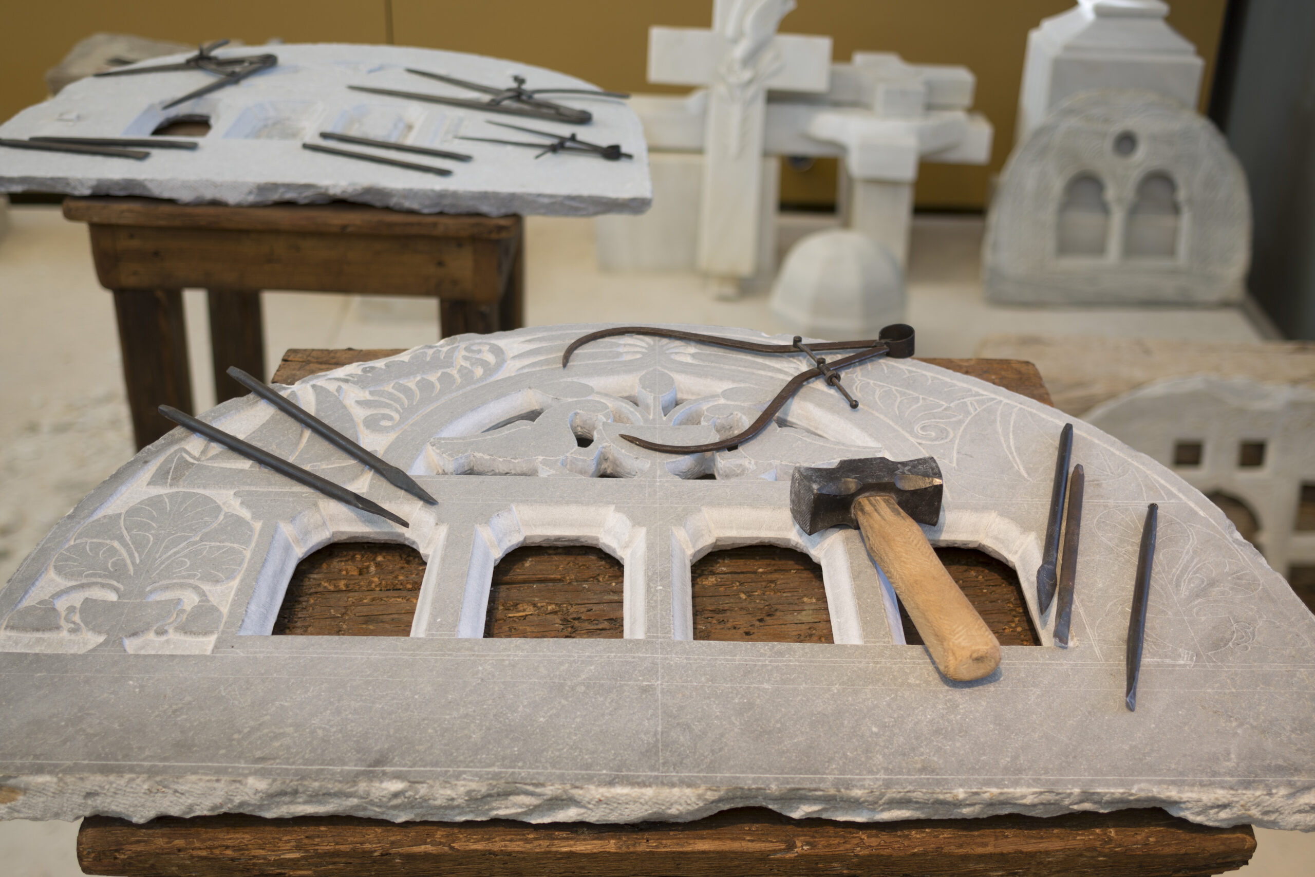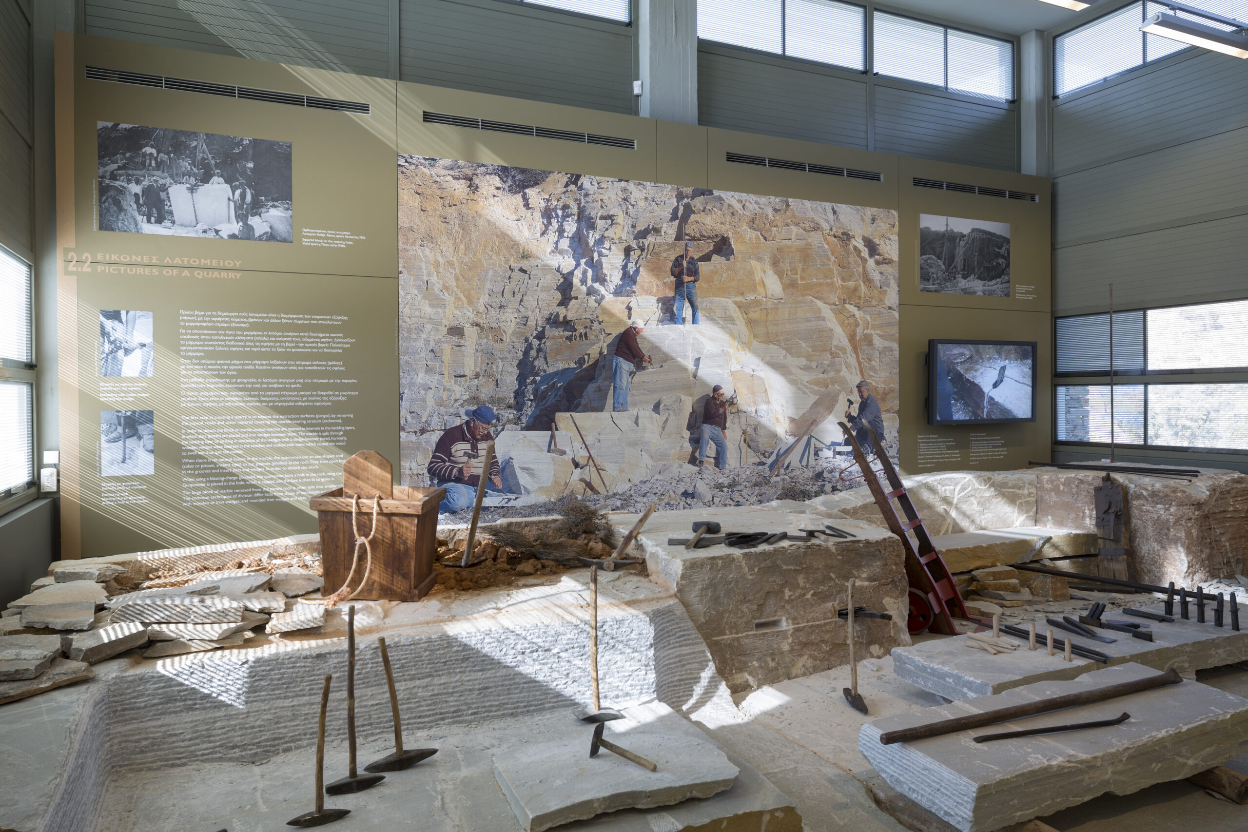 The museum exhibition’s audiovisual material brings to life traditional quarry work methods employed at quarries as well as by marble craftsmen. A rich collection of images sheds light on the history of marble sculpting on Tinos as well as the contributions of Tinian marble craftsmen in building Athens as well as other Greek cities during the 19th century.