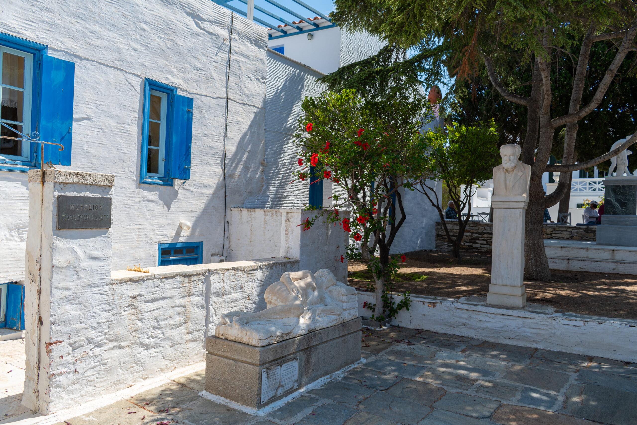 Esteemed sculptor Chalepas’ residence, transformed into a museum, is situated in Pirgos, the village of marble sculptors. The Chalepas museum features photos, work and personal belongings. The village cemetery, which looks more like an open-air museum, is filled with superb examples of folk art and ornate tombstones, including ones with creations symbolising the respective professions of the deceased, such as scissors for tailors and hammers and chisels for marble sculptors.