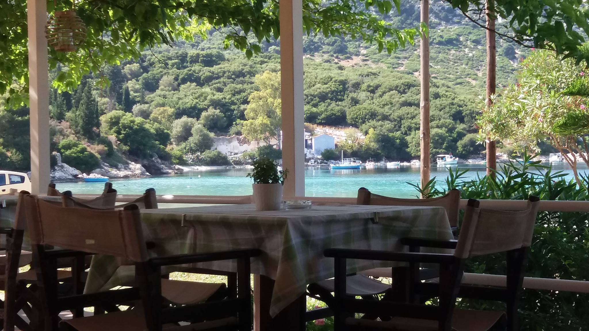 Enter Porto Athera, a village built around a narrow bay, and you will feel like stepping back in time. It is here that the “Blue House”, once the home of the composer Linos Kokotos, stands as a historical landmark. After soaking in history, enjoy fresh seafood and jazz music at Drosos Taverna. The taverna is centrally located on the beach.