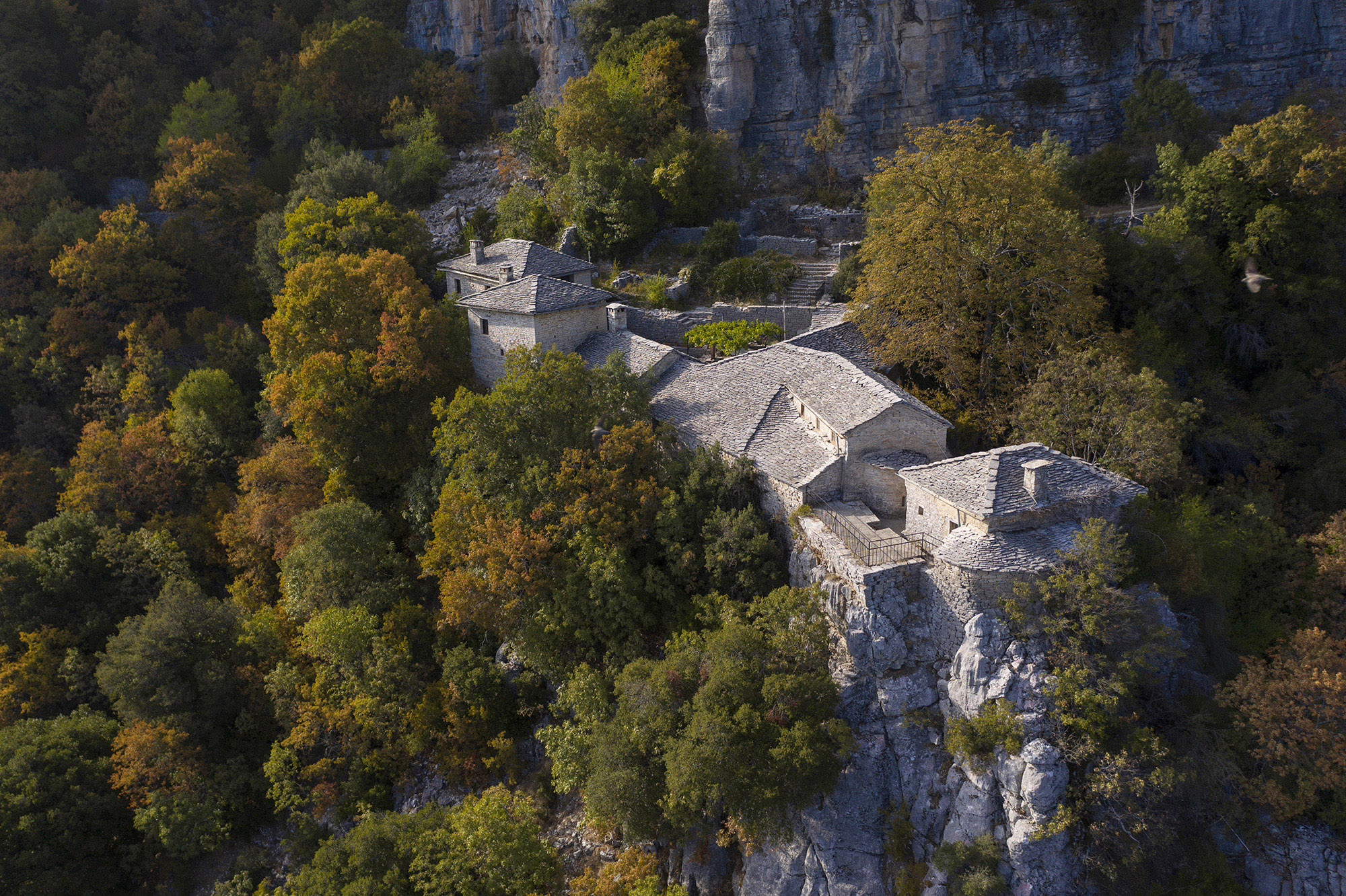 A historical monastery, where one of the most important representatives of the Greek Enlightenment, Neophytos Doukas took the veil. The monastery’s history is lost in the depths of the centuries and its original foundation still remains unknown. The monastery is located at the entrance of the village and, among other things, it is very interesting to note that the main temple and a small inner dome depict Solon, Sibyl, Plato, Aristotle and Plutarch. Abbess Euphemia has studied fine arts and, while initially engaged in modern art, her work can be found in the monastery’s guest house. She then trained in Paris in the art of mosaics. Today she teaches the art of mosaic and is working a huge mosaic depicting Agios Panteleimon for a church near Ioannina.