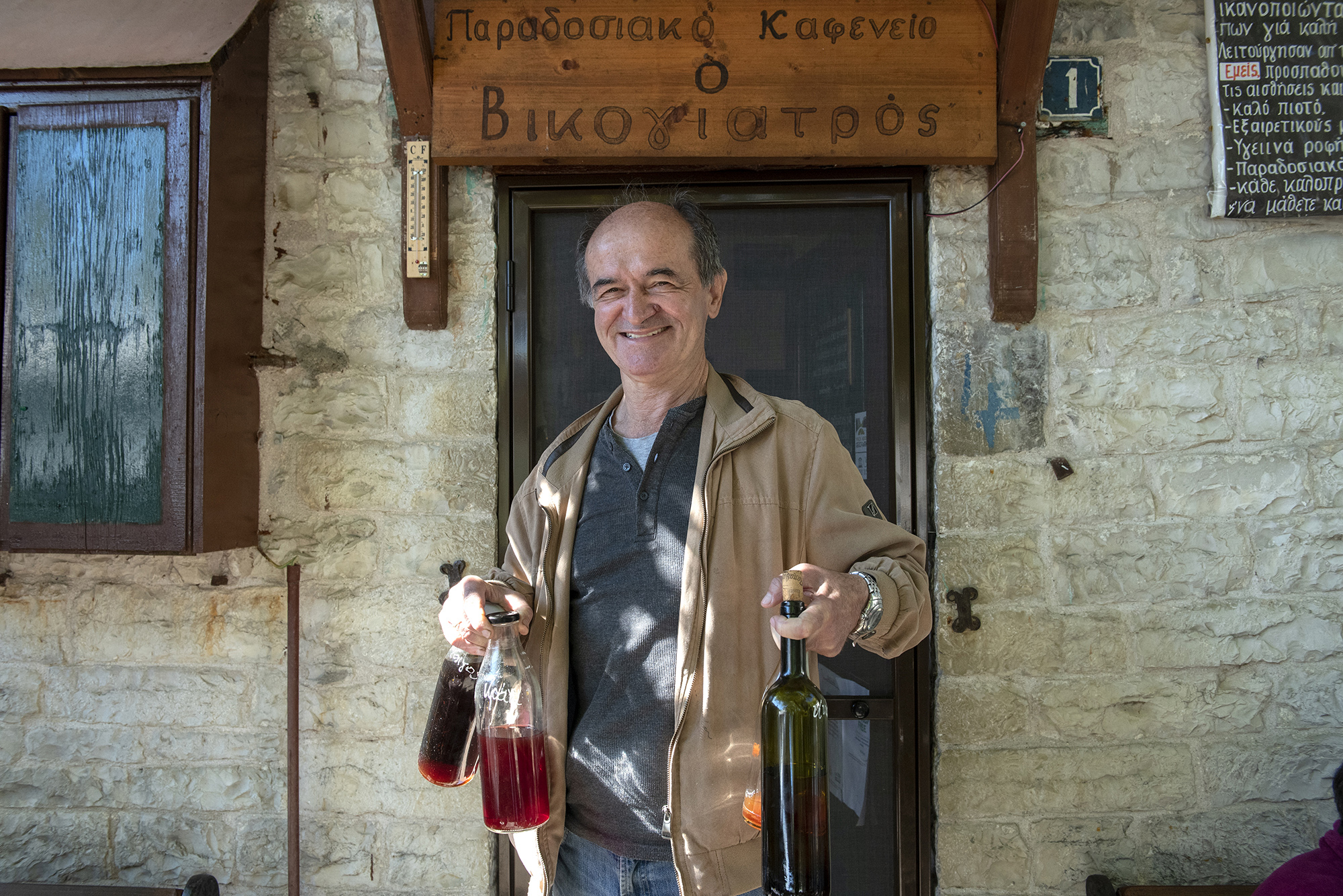 Under a huge plane tree in the courtyard of Vikogiatros café two ladies are crocheting. Nikos Kontodimos, owner of the café, brings two glasses along with 5-6 bottles of liquor. Which one shall we try first? Nettle, cranberry, cherry, quince and many more, each distinct in taste and benefits. “You should try the nettle-flavoured one” suggests one of the two ladies crocheting, while reading her knitting stitch pattern. A visit to Vikogiatros café in the village of Koukouli is a great opportunity to learn more about practical doctors of the 17th and 18th century, who harvested herbs from the Vikos Gorge and then travelled throughout the Balkans to help those in need, using these herbs as medicine.
