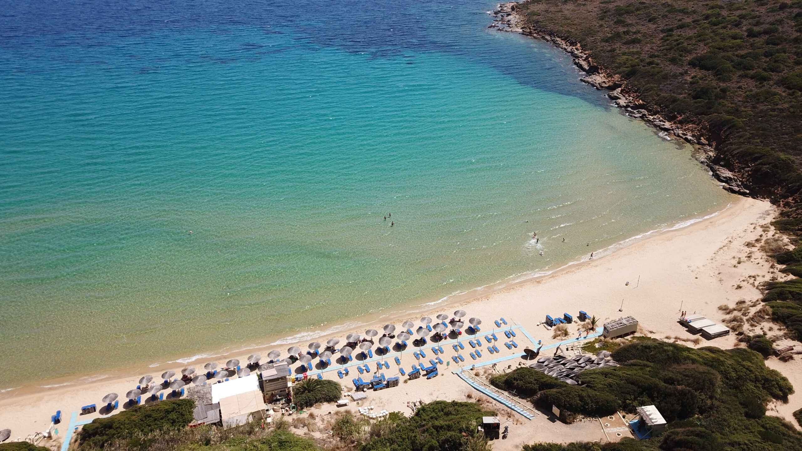 A long and sandy beach that’s ideal for windsurfing when the powerful meltemi winds pick up.