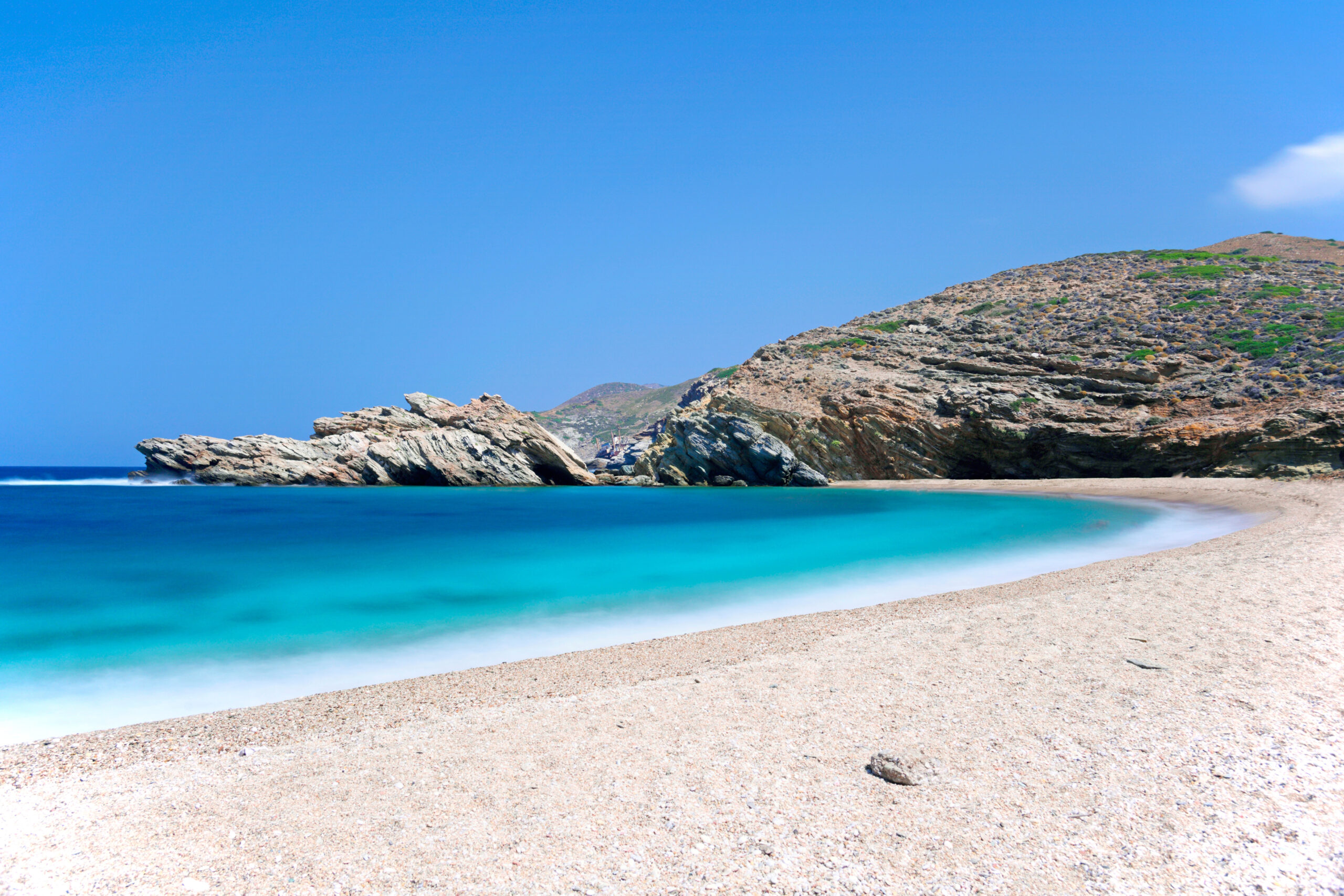 This beautiful sandy beach is near the village of Arni, on the northeastern side of the island. It became famous thanks to the wreck of a Turkish ship on its rocks, one of two historical; treasures to explore here; the other is an underwater shipwreck from 1920 that’s ideal for snorkellers. It is reachable via a dirt road.