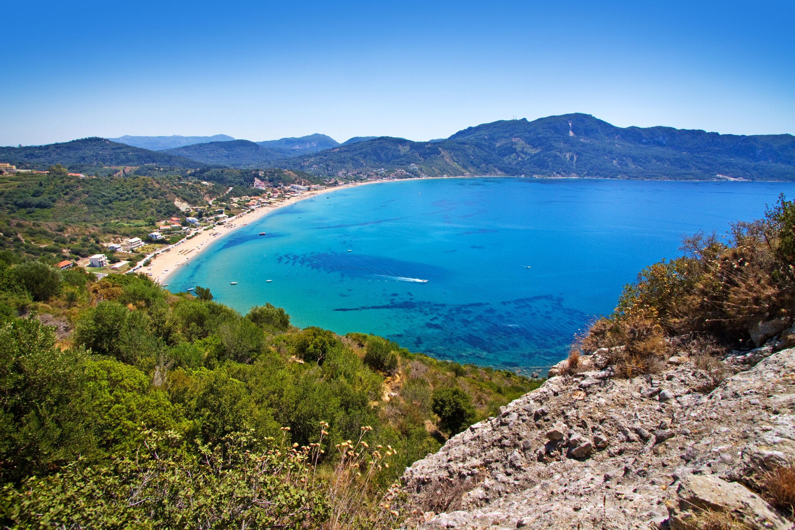 A busy, well-known, managed beach after Acharavi, with water sports, restaurants, and beach bars. At the foot of Mt. Pantokrator, Roda has grown from a fishing village to be a cosmopolitan resort with plenty of amenities and a lively nightscene.