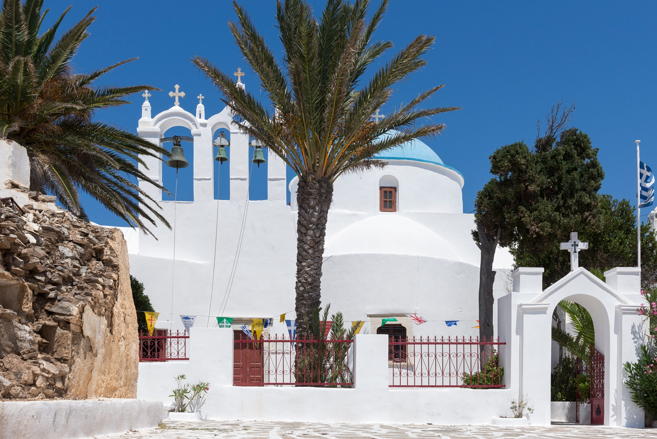 The Church of Pantanassa with an impressive blue dome is the cathedral of the island, founded in 1787 with some wonderful post-Byzantine icons of the Cretan school. It is on the main square, the heart of the village with cafés, shops and places to eat, while a little further away is the monastery of Zoodochos Pigi, one of the main attractions on the island. The Chorio was once stables and barns, now it is where the village has expanded with more modern architecture.