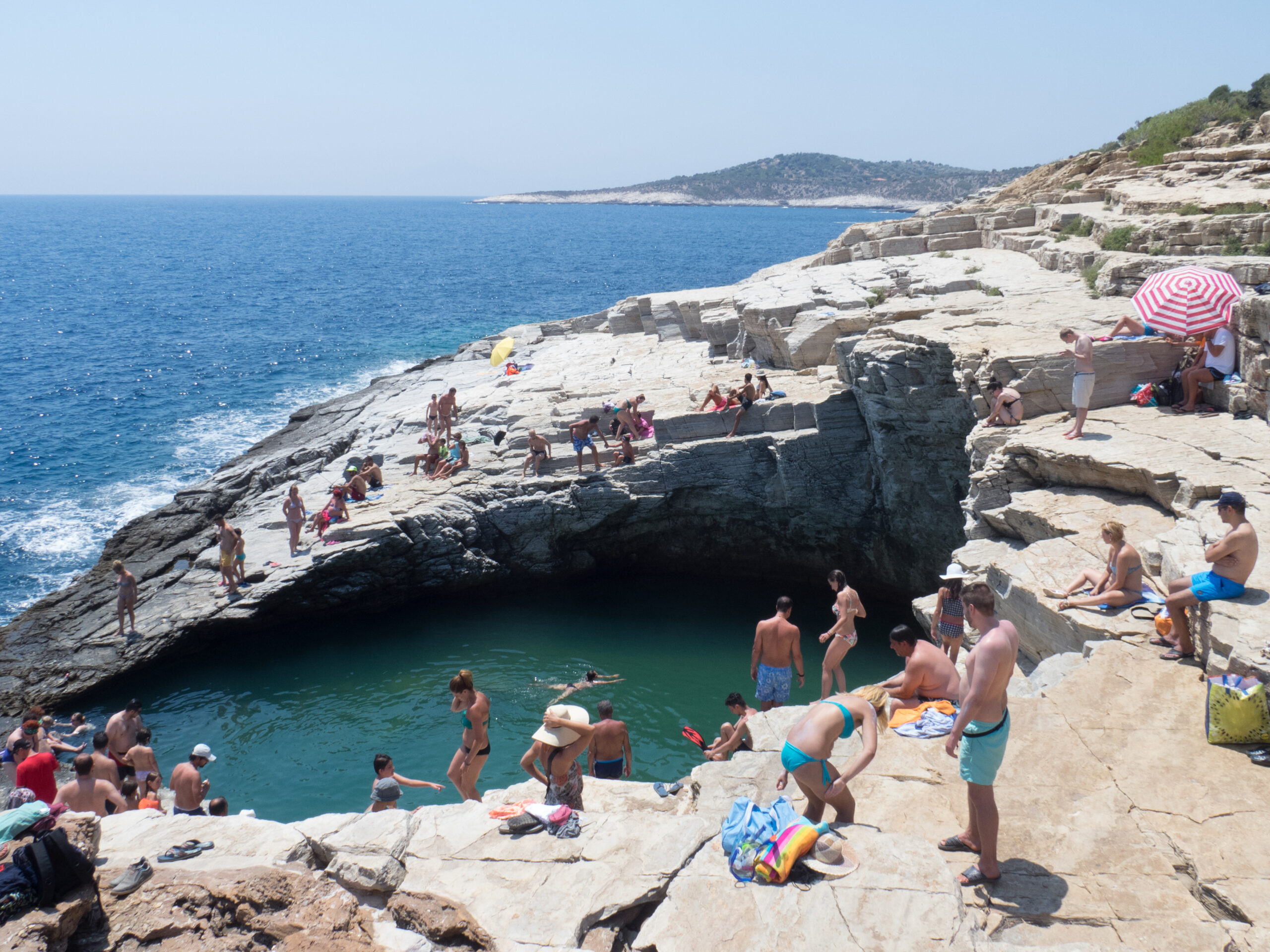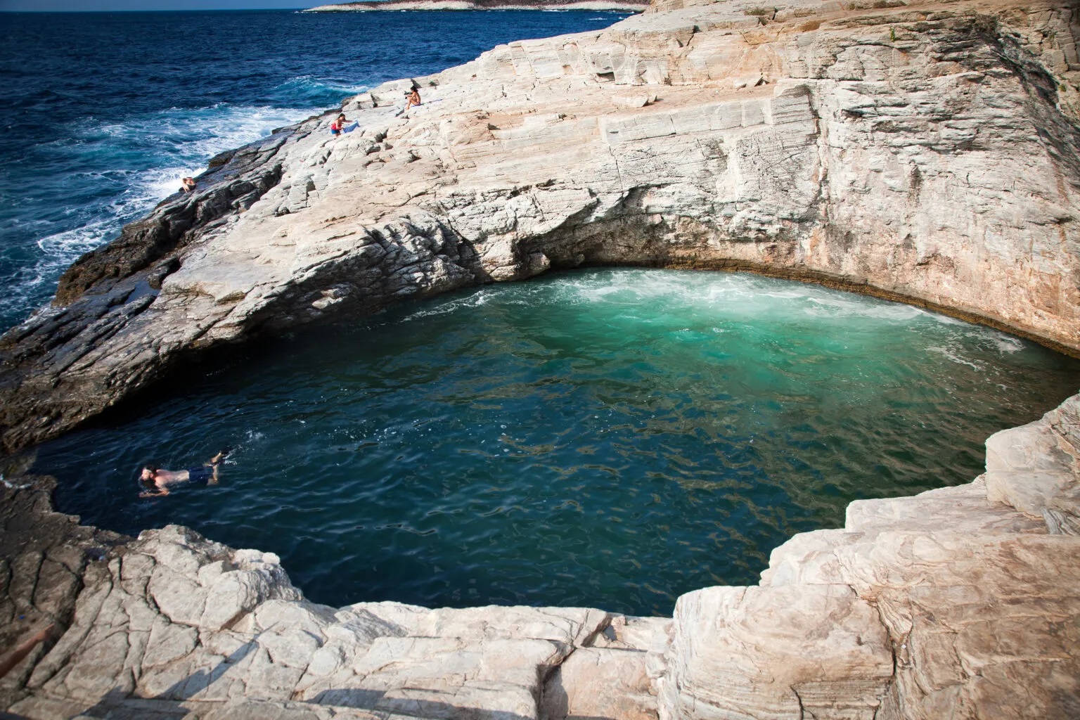 Giola is a miracle of nature. The result of relentless waves and ceaseless winds sculpting a rocky enclosure over countless centuries. Spanning approximately 20 by 15 meters and about 3 meters deep, it’s a testament to the Earth’s undying creativity. But of course, the locals have a more romantic tale for its inception.