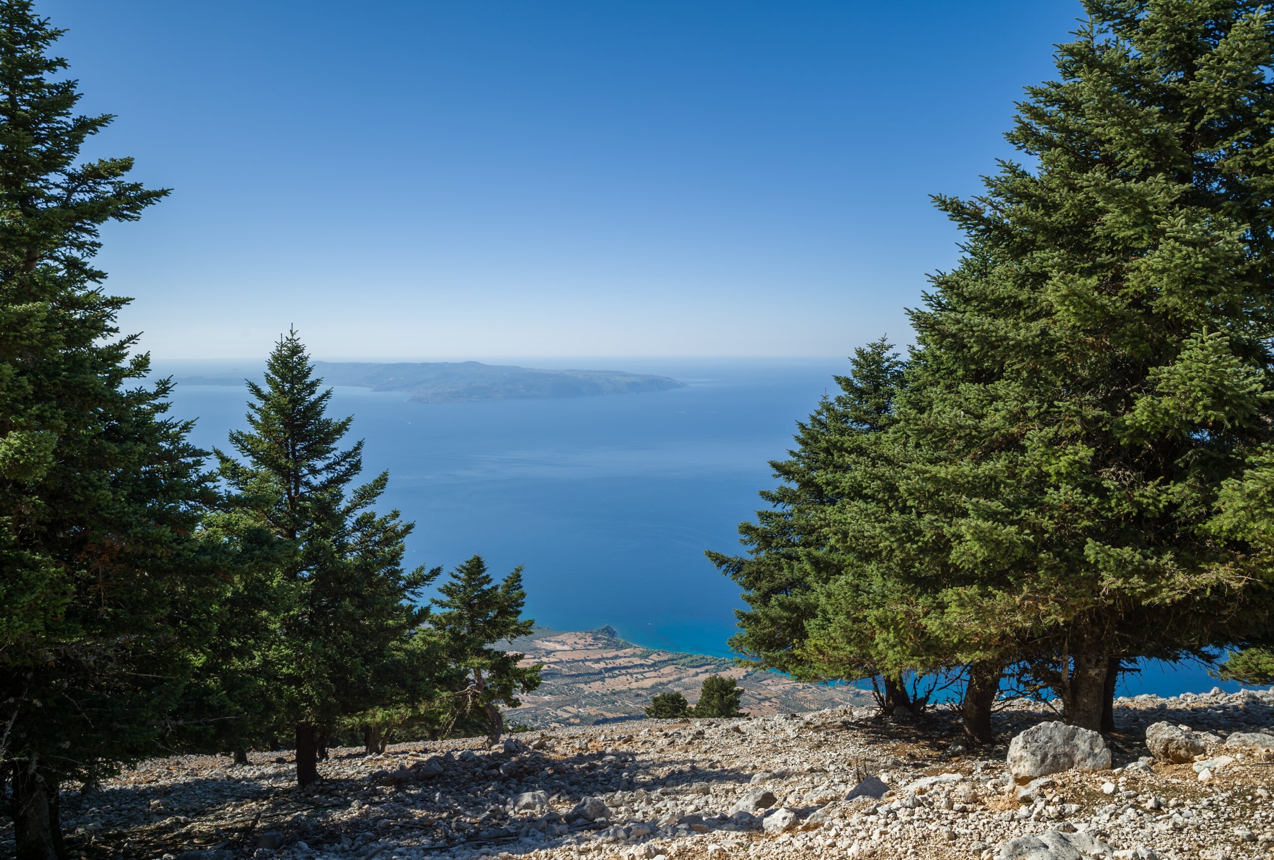 Rising from the sea like a dark green beacon, Mount Ainos—known as the “Black Mountain” or Monte Nero by Venetian sailors—is the tallest peak in Kefalonia and the Ionian Islands at 1,628 meters. Its slopes are densely covered with the endemic Kefalonian fir, Abies cephalonica, which gives the mountain its shadowy appearance and historical importance.