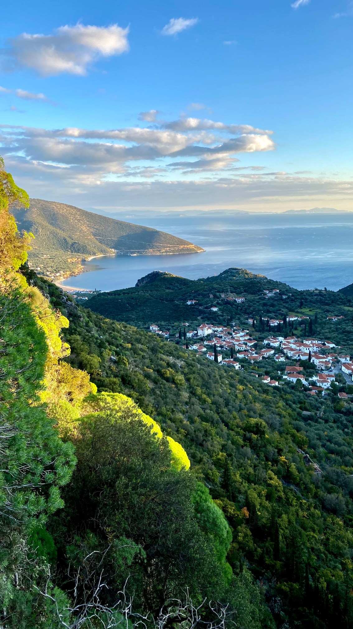 The village, with a total population of approximately 400, is divided into three settlements. Vrysi, or Kyparissi, is the village section away from the sea, and the first of the three settlements to be encountered. It is also the oldest of the three. The other two more recent sections are coastal spots. Paralia attracts the greatest number of visitors. This settlement hosts most of the area’s cafes and tavernas. It also features traditional whitewashed houses right up against the sea. Photos of this setting have been widely published. You may have seen a shot or two. Mitropoli, Kyparissi’s third settlement, offers lots of accommodation and, generally, features newer buildings.