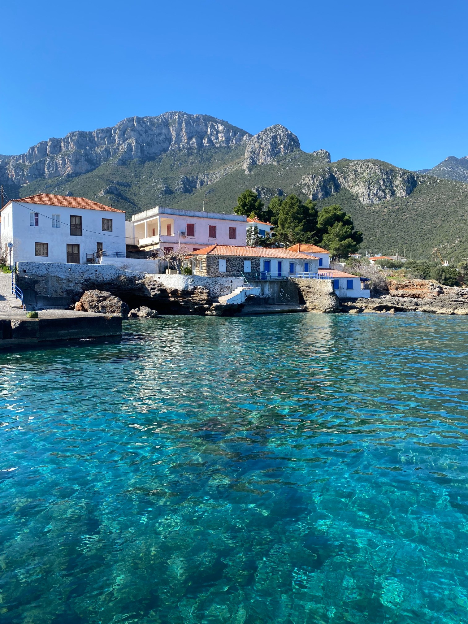 Kyparissi is situated beyond the region’s well-known stone villages and beaches, at a secluded – even for Lakonia standards – corner of the Peloponnese’s east coast. This village seems like it is on the edge of the world. It is a two-hour drive from Sparta. The last part of the road includes a challenging section with bends and narrow stretches while heading down the slopes of the Parnonas mountain range. The difficult drive, however, offers instant gratification as soon as Kyparissi’s whitewashed two-storey houses and the Myrtoan Sea’s shoreline come into view.