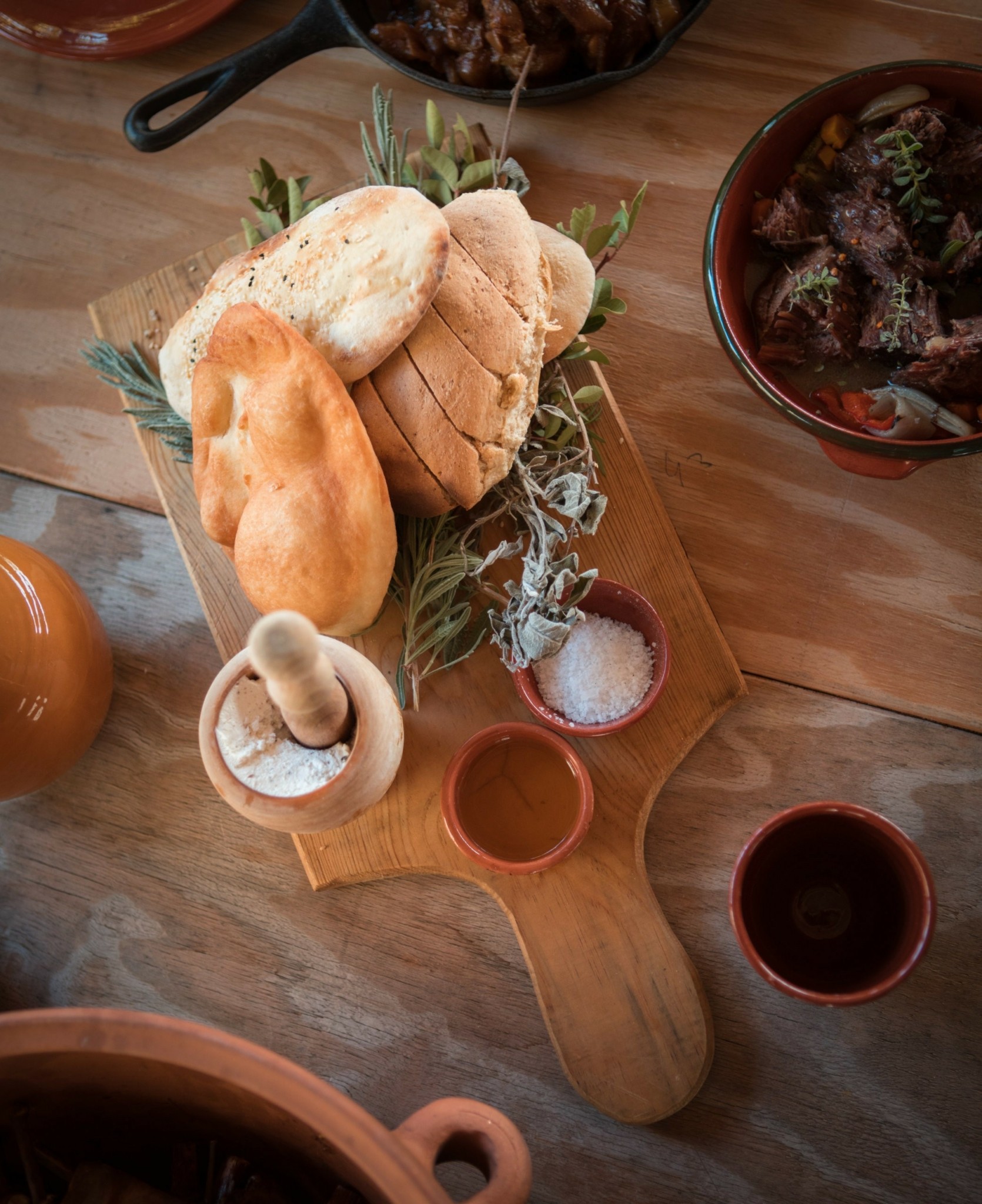 Koukos: Open from the morning hours, this spot serves fresh baked bread buns and a variety of other products, all from a wood-fired oven, as well as Greek coffee traditionally brewed in hot sand (hovoli), wine, souma (distilled spirit), ouzo and traditional mezze (assorted) dishes. 20-26 Mandilara, +30 22410 73022).