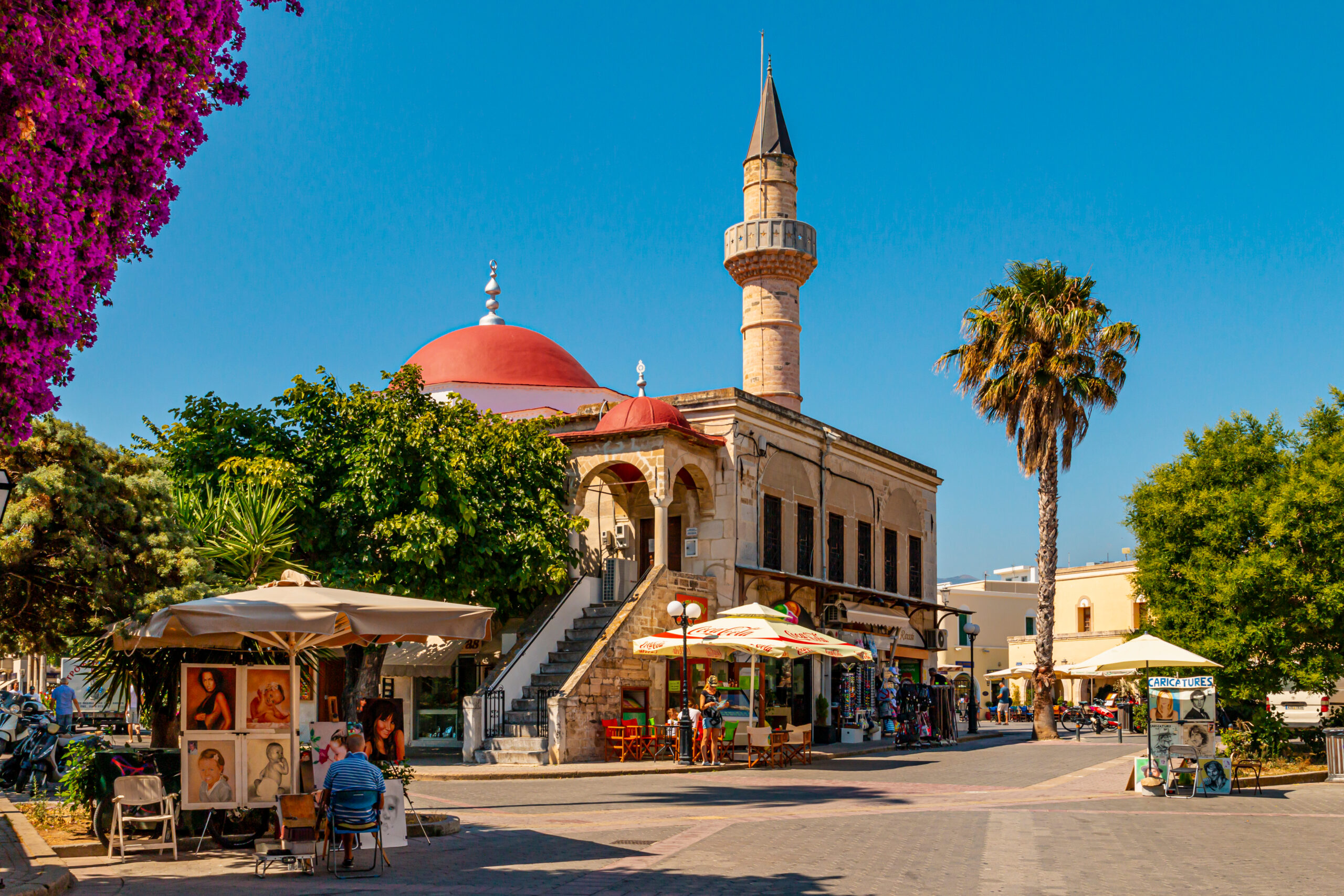The old city centre is located in Platanos Square (or Loggia Square) one of the most touristy spots. The Loggia Mosque was built in 1786 and its walls are cluttered with pieces of ancient and mediaeval monuments. Directly opposite it stands the Hippocrates’ plane tree.