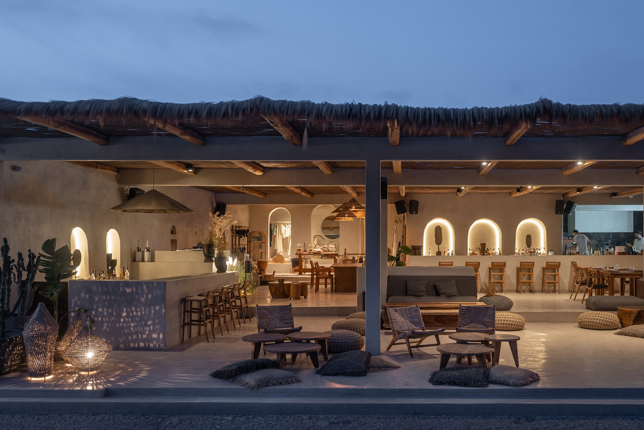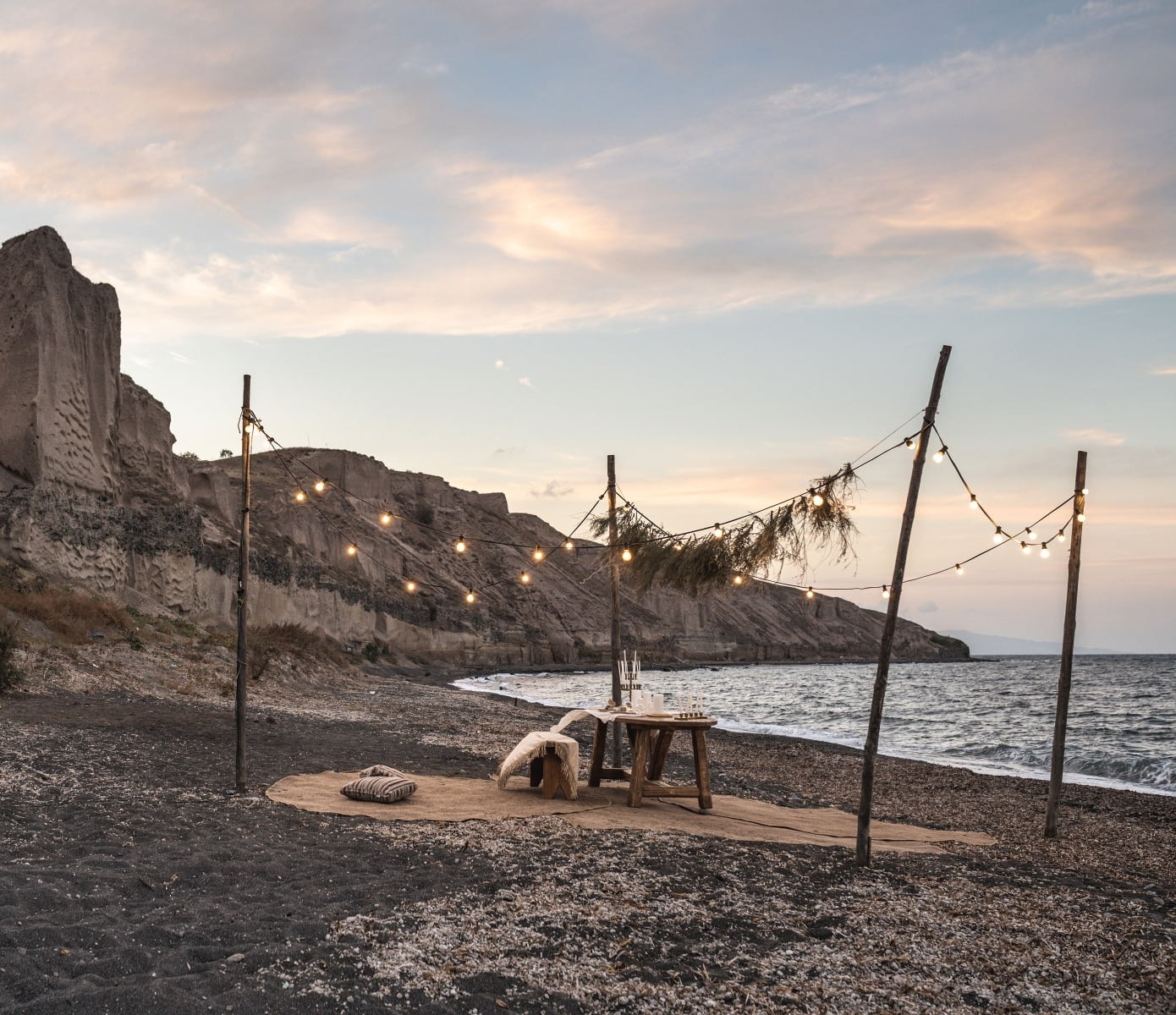 Discover an oasis of bohemian-luxe charm at East Breeze Santorini Beach Bar, tucked away at the far end of Karterados Beach. Combining minimalism with rich textures, the decor and furniture are all hand-crafted and styled for a relaxing beach experience. With a beach resort, restaurant, and venue area, East Breeze offers a balance-restoring cultural hub, complete with Mediterranean cuisine, refreshing cocktails, and guest DJs by night. Take in the extraordinary landscape of Monolithos Beach, with white-washed cliffs surrounding the area and the sound of whispering waves providing the perfect soundtrack to your day. Don’t miss the authentic cocktails and shisha by the beach, as well as the open-air cinema nights under the stars.