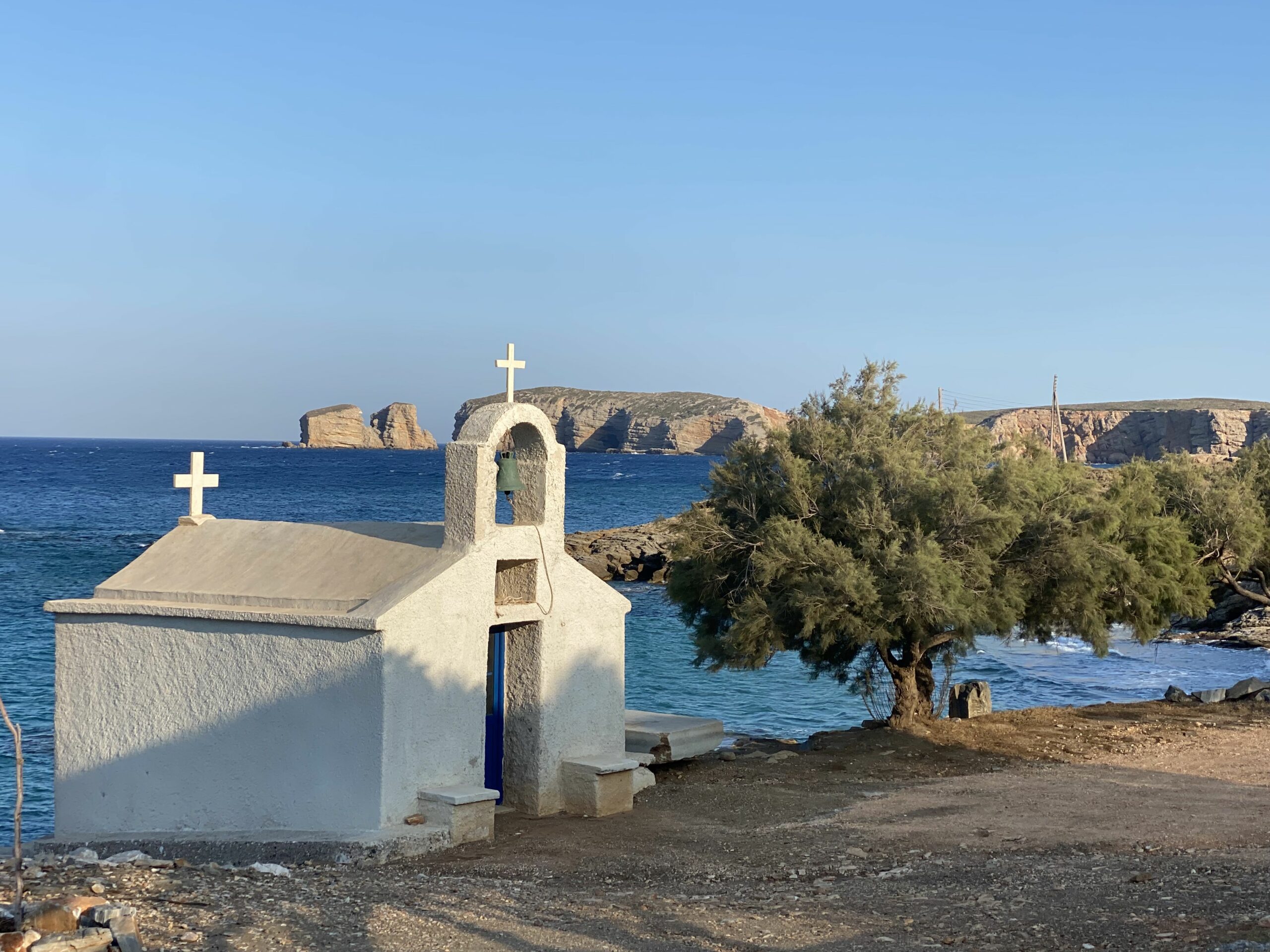 Nearby, the small Byzantine chapel of Agios Mamas—one of the oldest on the island—and the roadside shrine of Agia Kyriaki make fitting pauses. The wind may lash the cliffs, but the spot invites both contemplation and photographs.