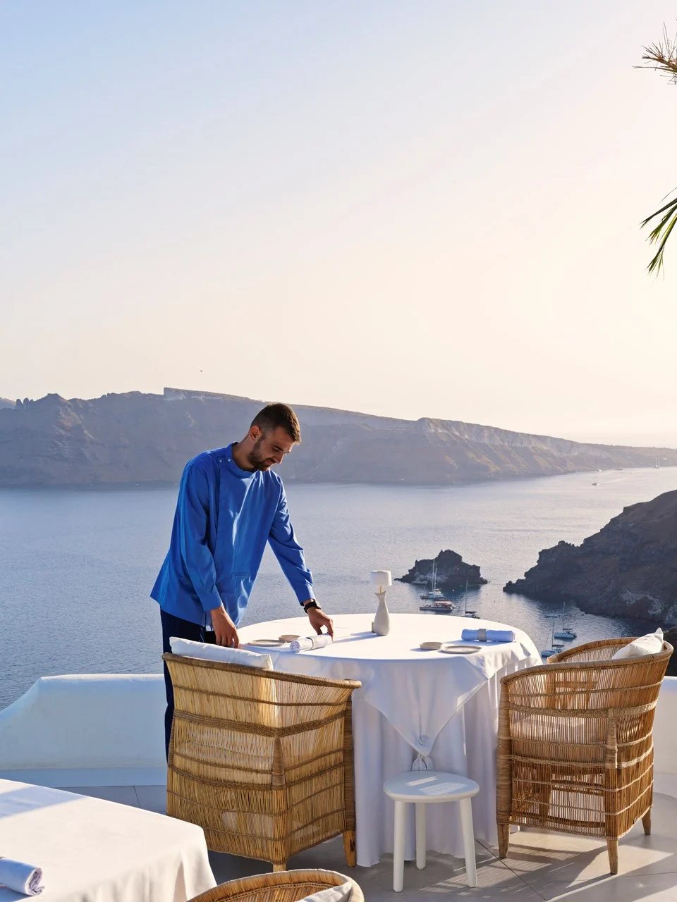 Stay: Katikies for luxurious cliffside suites; Mystique for intimate, adult-only peace.