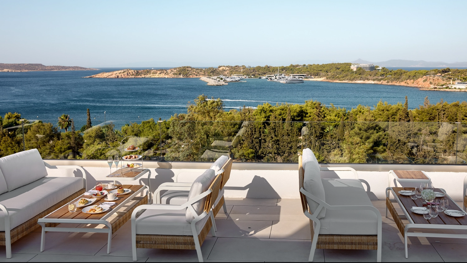 The Roc Club, in the heart of Vouliagmeni, the most premium ZIP code of Greece, is a sparkling new addition to the Athens Riviera’s luxury scene. This Club-Maison, that used to be the upscale Vouliagmeni Suites, offers spectacular views and intimate luxury that captures the essence of riviera living. Guests are welcomed with Grecotel’s – a local hotel giant with mythical properties, think the Marriott of Greece – signature warmth and a welcome drink of prosecco and juice (we loved the smiles of the uber-cute staff that sets the tone for a relaxing and indulgent stay).