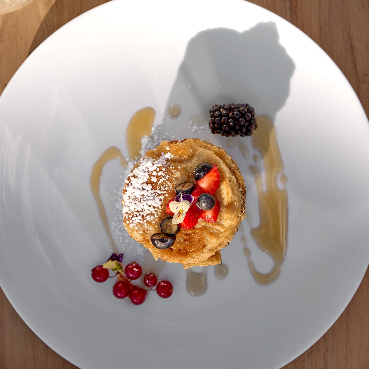 Speaking of breakfast, it’s described as “extra scrumptious” by guests (indeed, we agree) and for a good reason, offering a range of à la carte options (don’t miss the house eggs, which the staff prepares with impressive, almost humbling, diligence) and Greek delicacies and pies served on individual trays (like scones) for a personalized morning experience.