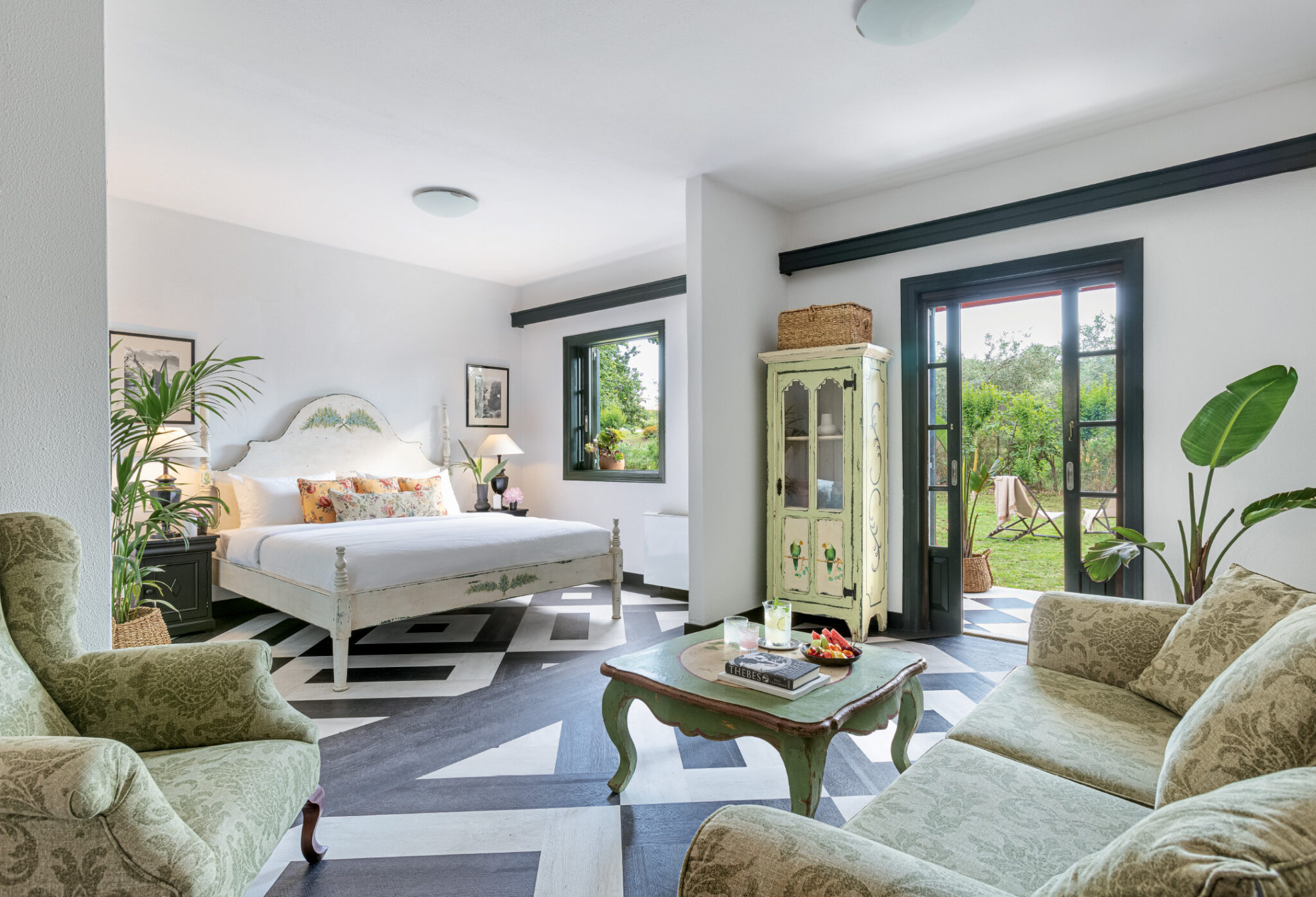 Family rooms, studios, apartments, maisonettes, bungalows, and suites, all spacious, with verandas or balconies offering views of the lush gardens or the pool, some sharing private pools, epitomize chic country-side living and exude warmth, familiarity, and a genuine sense of hospitality.