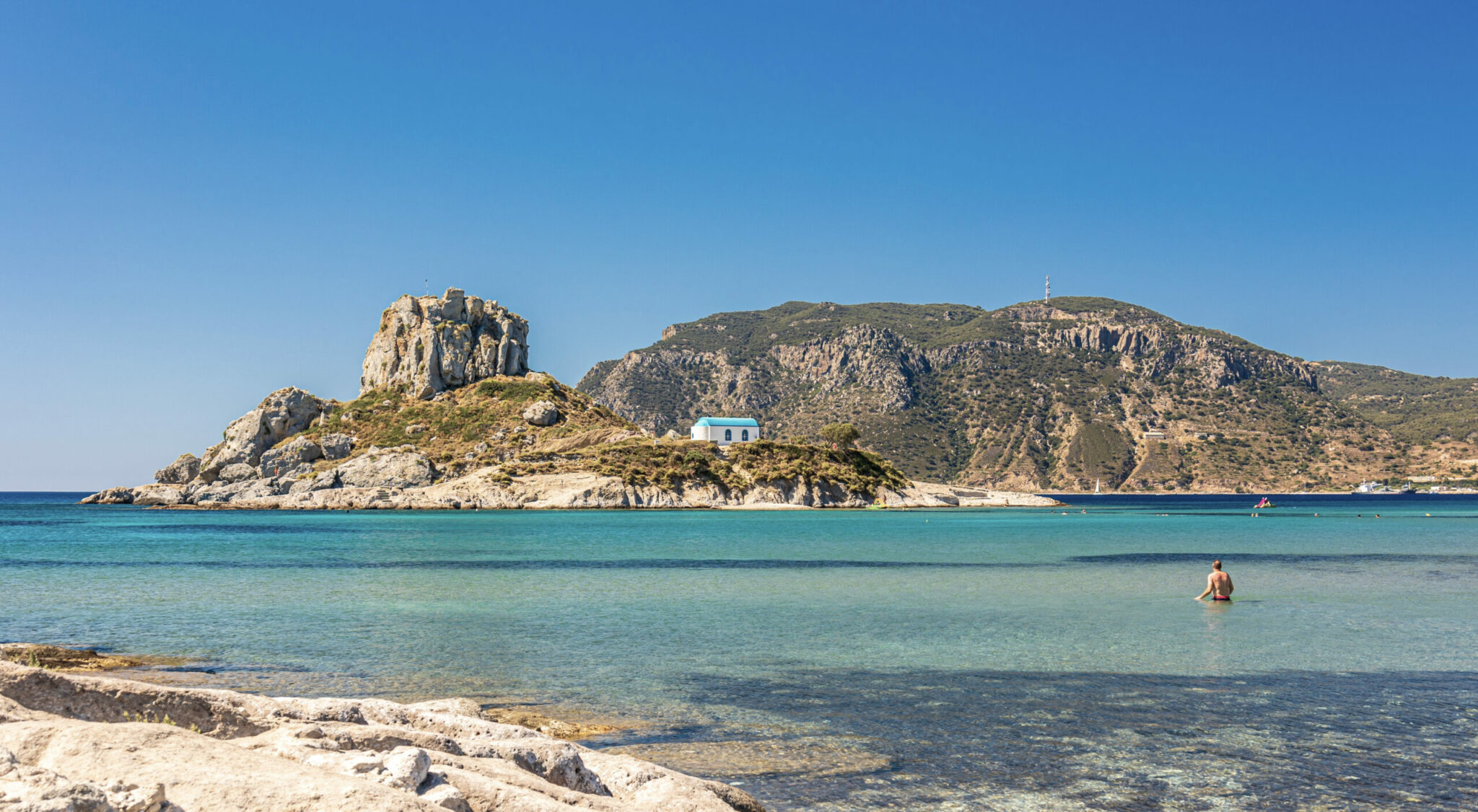 Nearby, time seems to play tricks in Platani, the village of Kos’s Muslim community, offering an interesting gastronomic stop thanks to the blend of Turkish and Greek flavors. The traditional village of Kefalos, the island’s ancient capital, will remind you that you are on an island with its whitewashed colors and narrow streets, and will delight you with the beautiful beach of Agios Stefanos and the sight of the small islet of Kastri with its blue and white chapel opposite.