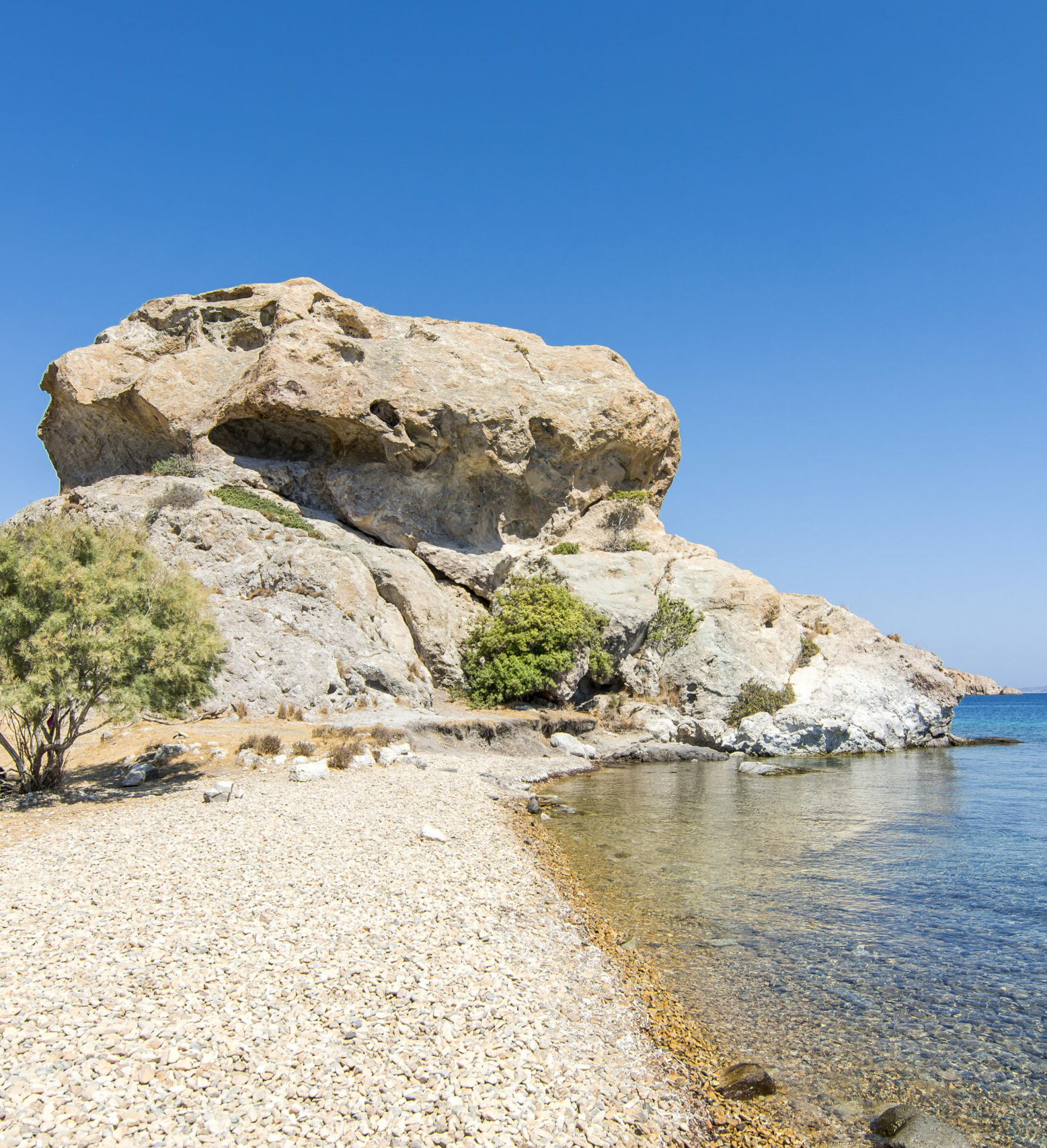 To start discovering the island’s amazing beaches, you won’t even need to travel great distances: Hochlakas is a small, pebbly beach behind Skala; near the port you can cool off on the organized sand of Agios Theologos; while just 5 km south you’ll find yourself in the fully equipped seaside village of Grikos with its namesake sandy beach and view of Tragonisi islet.