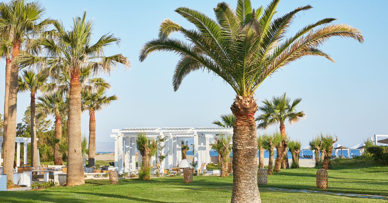 At the timelessly beloved, classic resort Creta Palace, the view of the enchanting Cretan Sea and the dreamy gardens with tall araucaria trees surrounding the bungalow settlements and main buildings will make you forget you’re just four kilometers from Rethymno’s old town. The 300-meter beach with sand and pebbles, the two pools and 10 private ones for villa guests, the fully equipped gym, and the extensive services offered at Elixir Beauty Spa, a traditional village consisting of a small square, a church, a traditional cafe, and numerous small shops, will no doubt keep you well entertained. Meanwhile, children can enjoy playing and swimming in the special kids’ pool with water slides.