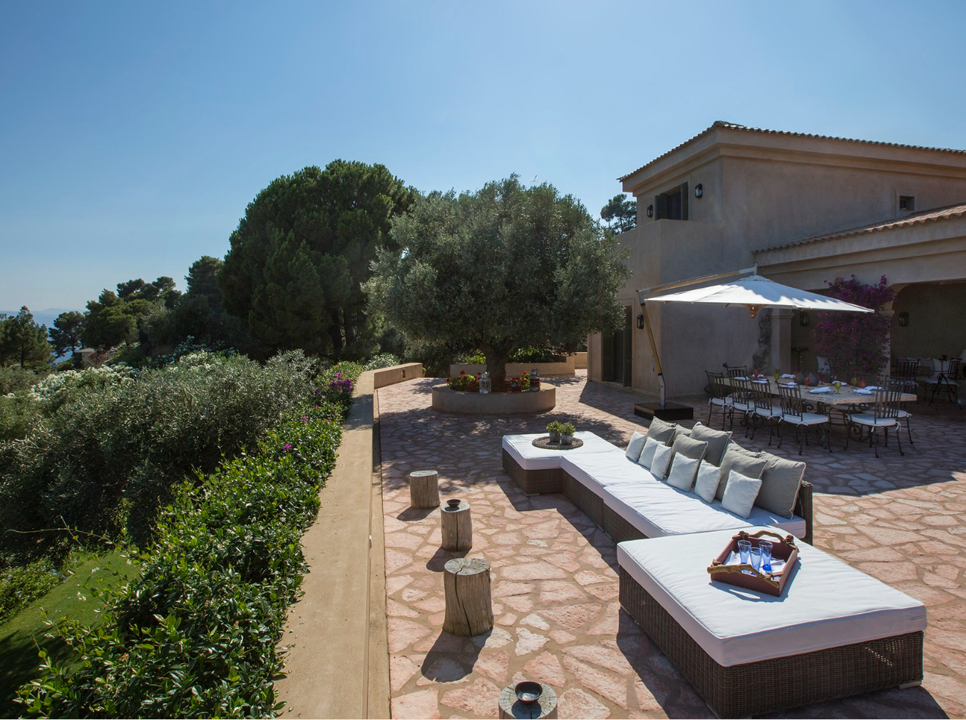 Surrounded by olive trees and tall oleanders, harmonized with its unique natural surroundings, facing the calm blue expanse at its feet, Villa Azalea offers warm hospitality in a familiar, comfortable environment. Its elegant architecture draws inspiration from local tradition. High-level, discreet service even provides a chef.