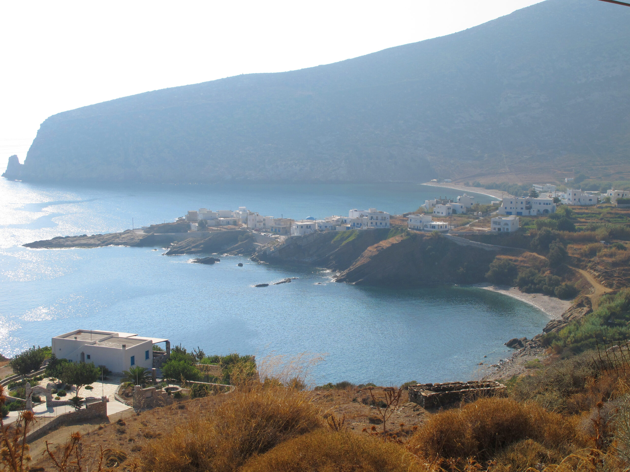 Amphitheatrically built on the slopes of Mount Fanari, Apeiranthos has wonderful views of the surrounding mountains. Bookended by the Venetian Bardani and Zevgoli towers, the marble-paved alleys are picturesque and it is noticeably cooler and greener here 600 metres above sea level. Originally settled by Cretans who have retained their own dialect, the atmosphere is more of a northern mainland village and, as the locals like to point out, there is no way to tell that you are on an island. Amazingly, Apeiranthos has four small private museums; Natural History, Geological, Fine Arts and a Folklore Museum, as well as a state funded Archaeological Museum.
