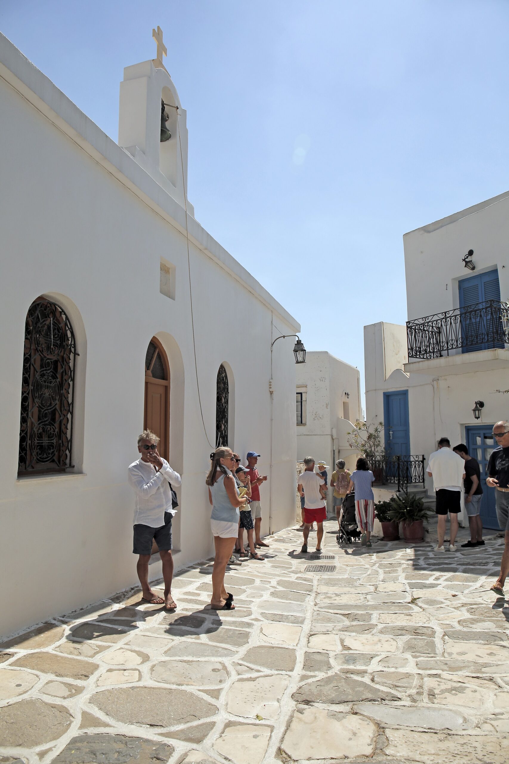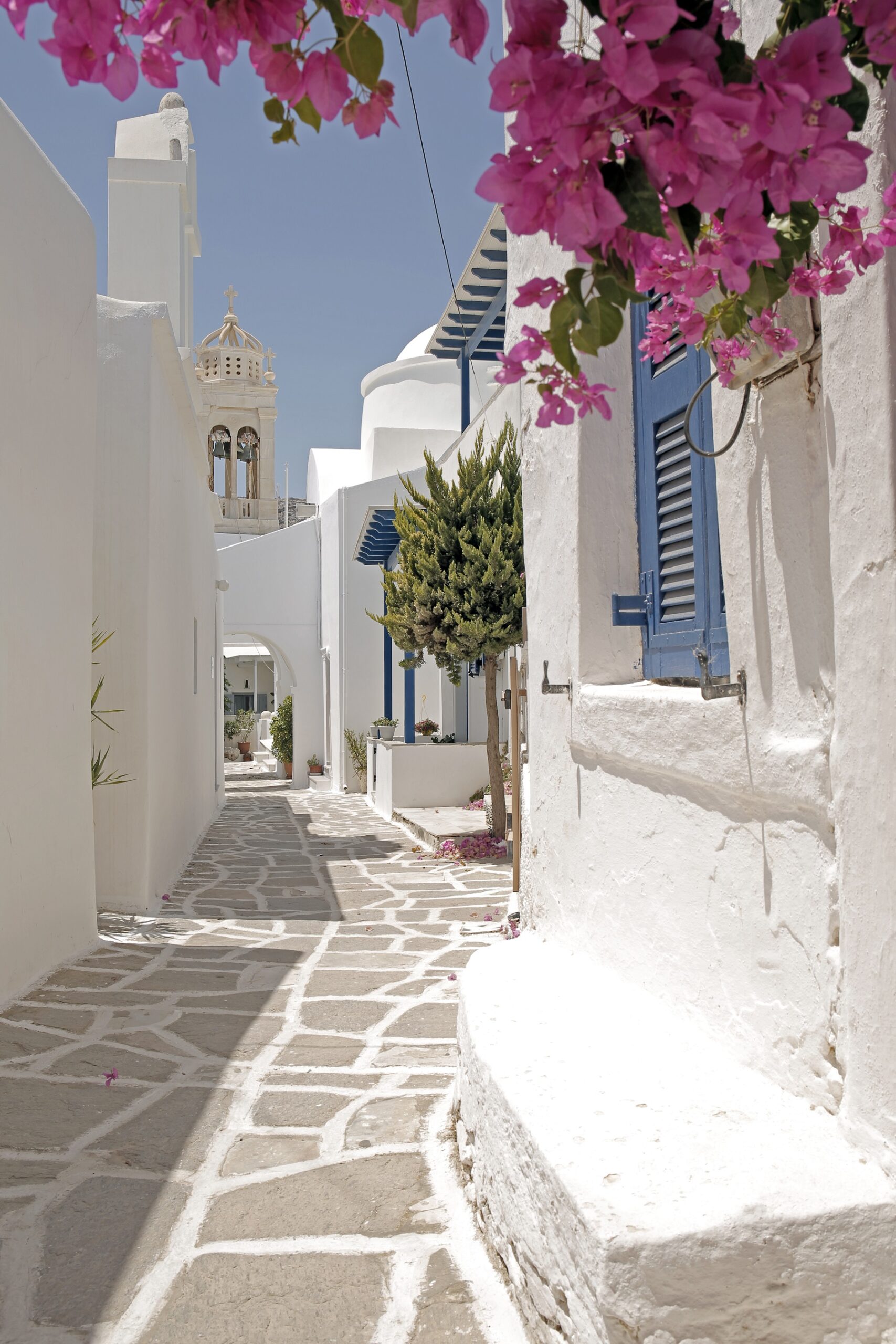 Unlike the smaller Cycladic islands with a tiny chora and a port, Paros is blessed with a handful of countryside villages, known for their traditional atmosphere, whitewashed buildings, winding paved streets, and pretty churches. Away from Parikia and Naoussa are communities with streets too narrow for cars to pass, and beautifully kept houses with geranium-filled courtyards and sleeping cats. This is the Cyclades at its most tempting, with the steady breath of the wind and blue skies as your companion and the scent of pines and mountain herbs filling the air.