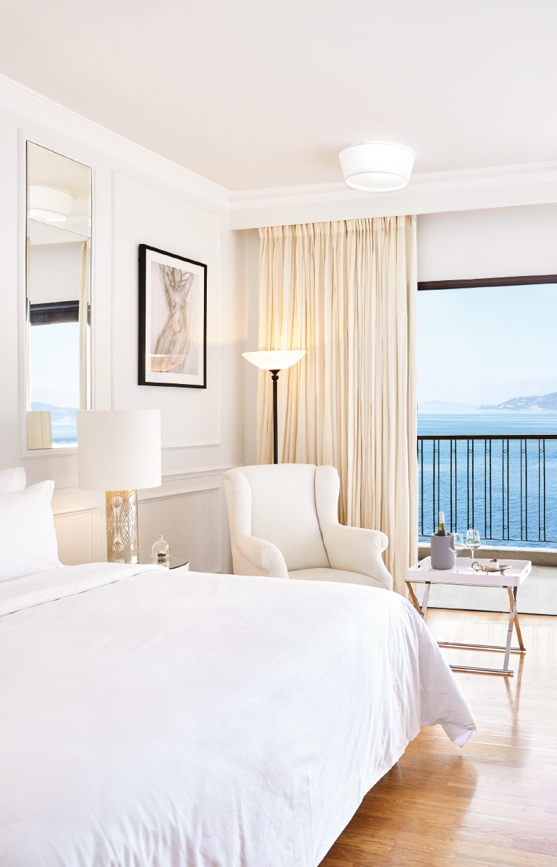 This famous five-star hotel is located in the heart of Corfu Town. It features 106 elegant rooms, superior rooms, and suites. The hotel also has a large outdoor pool, indoor pool, restaurants, and bars.