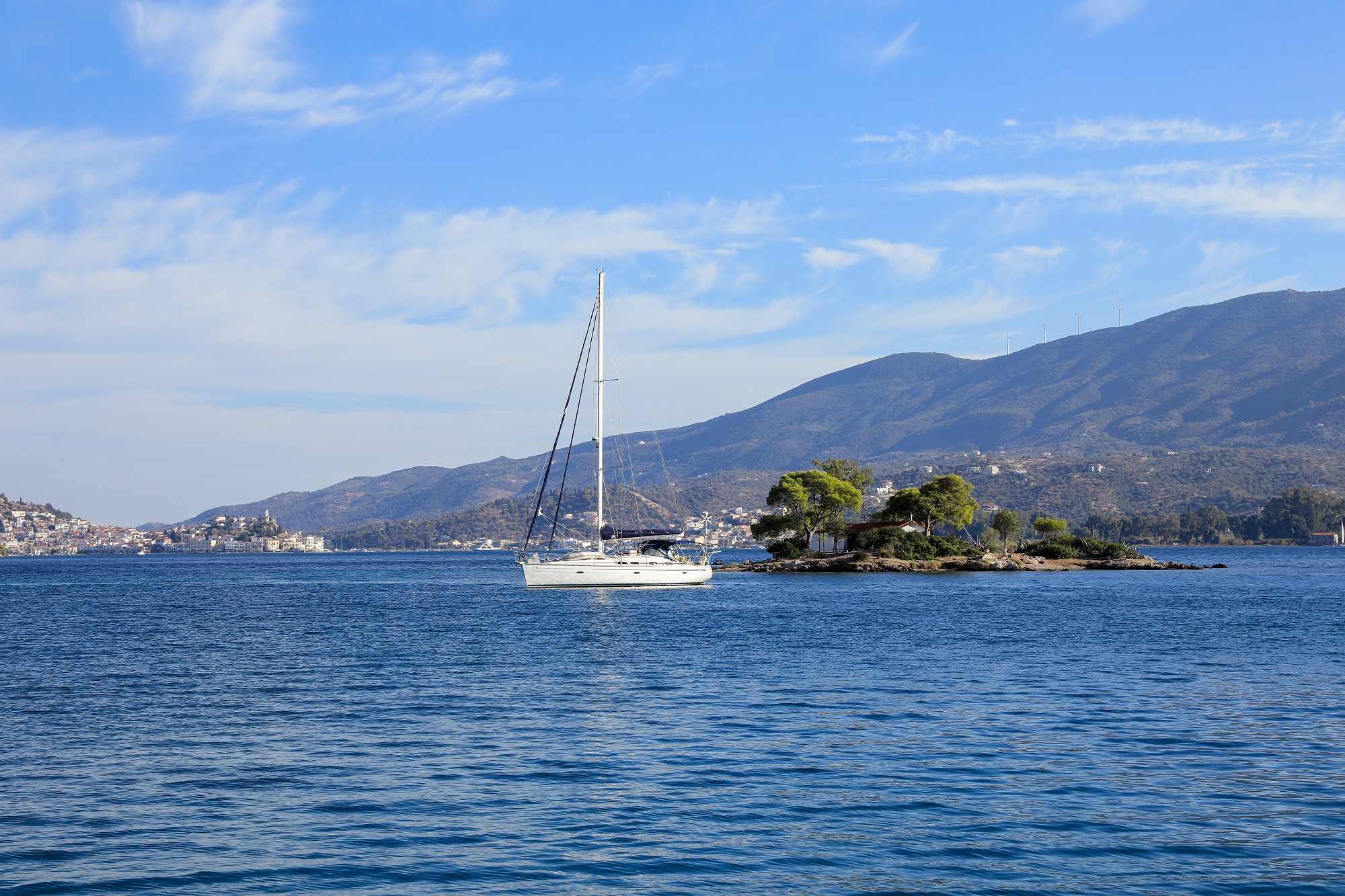 The islet, whose shape, from a bird’s eye view, is said to resemble a heart, is situated in the Saronic Gulf, opposite the western side of Poros, just off this bigger island’s Russian Dockyard gulf area with a sandy beach and pine forest.