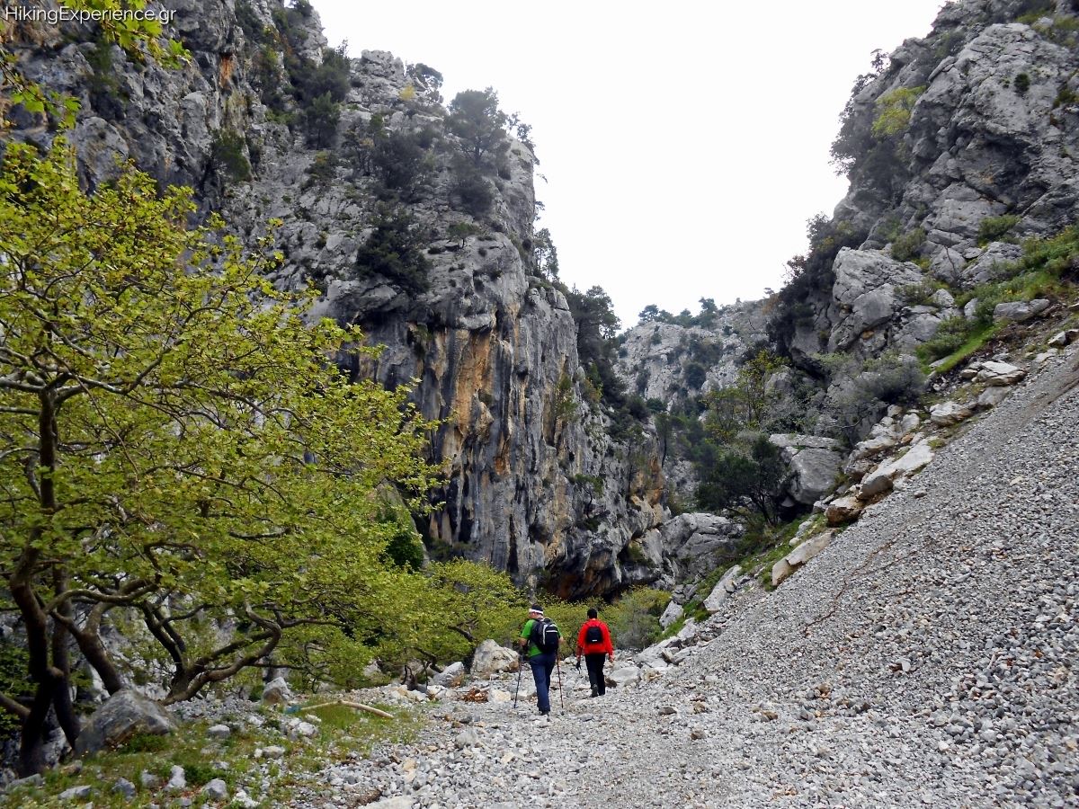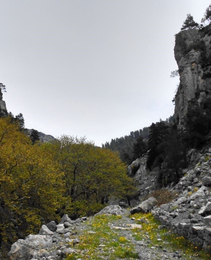Entering the gorge, which is about 6 kilometers long, you’ll see that the trail is well marked with signs on trees and rocks as well as with relevant signboards. Initially, the path is downhill as it enters the gorge’s entrance, but it then goes uphill as it follows the stream’s course and at some points crosses from one bank to the other via small bridges. The trail is quite easy to walk and in many places paved with stones. It’s ideal for those taking their first steps in hiking or mountaineering.
