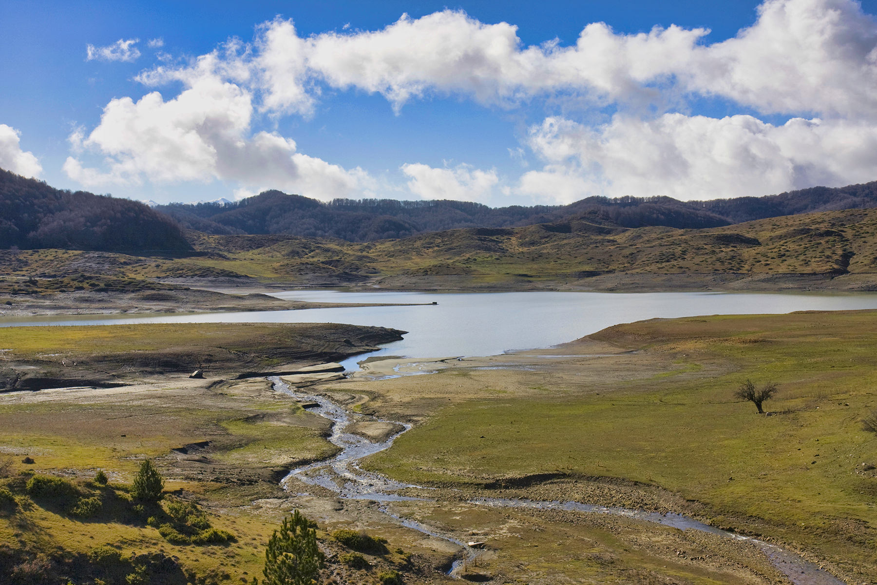 The lake is at the heart of the Pindus mountain range, wedged between two national parks, Valia Kalda and Vikos-Aoos, and is spread over 11.5 square kilometres. Its depth varies greatly from one section to another, ranging from just one metre to 80 metres, the deepest point, close to power utility PPC’s dam at the Aoos river.