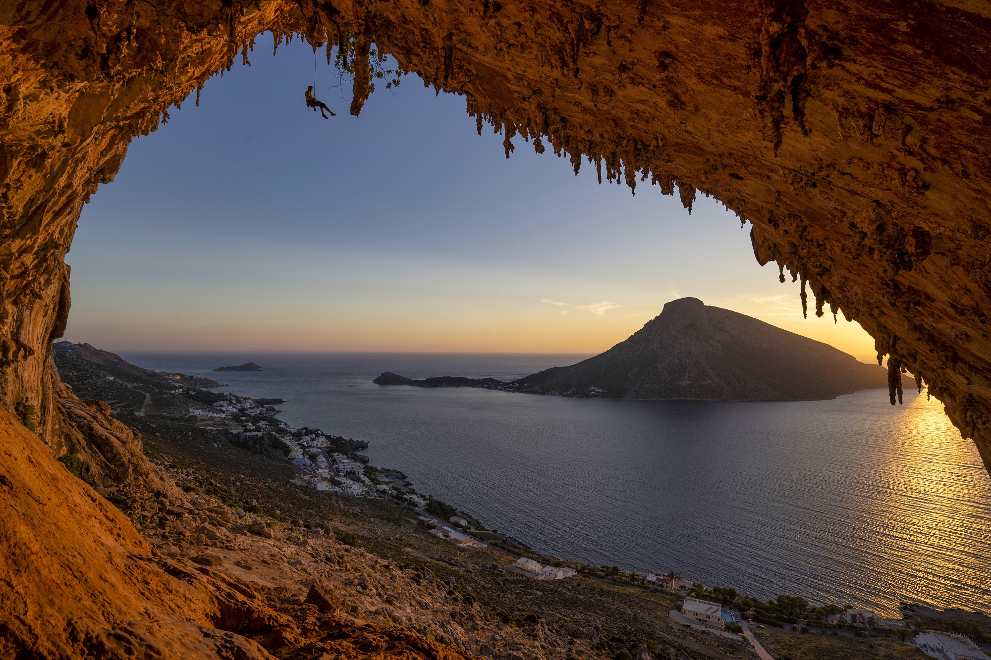 One does not need to be interested or active in rock climbing to enjoy the beauty offered by Grande Grotta. The spot ranks as one of the most impressive on the western side of Kalymnos, making it an ideal place to simply visit. Sightseers can explore the cave’s interior, featuring large stalactites, and enjoy the view of the endless blue of the Aegean and the island of Telendos directly opposite.