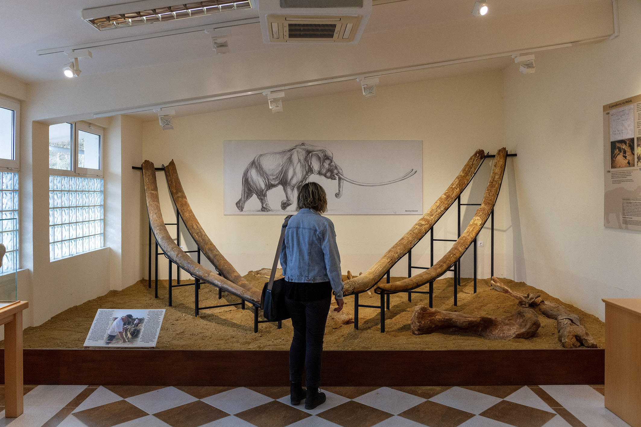 When researchers at the time saw something protruding at the top of a sand dune in the deposits of the Aliakmon River, they initially thought it was a rock. But it was a piece of bone from a large animal. Systematic excavations revealed the bones and teeth of a proboscidean animal. The tusks found in a cross position were complete, and reached 4.39 metres, some of the largest that human research has unearthed.
