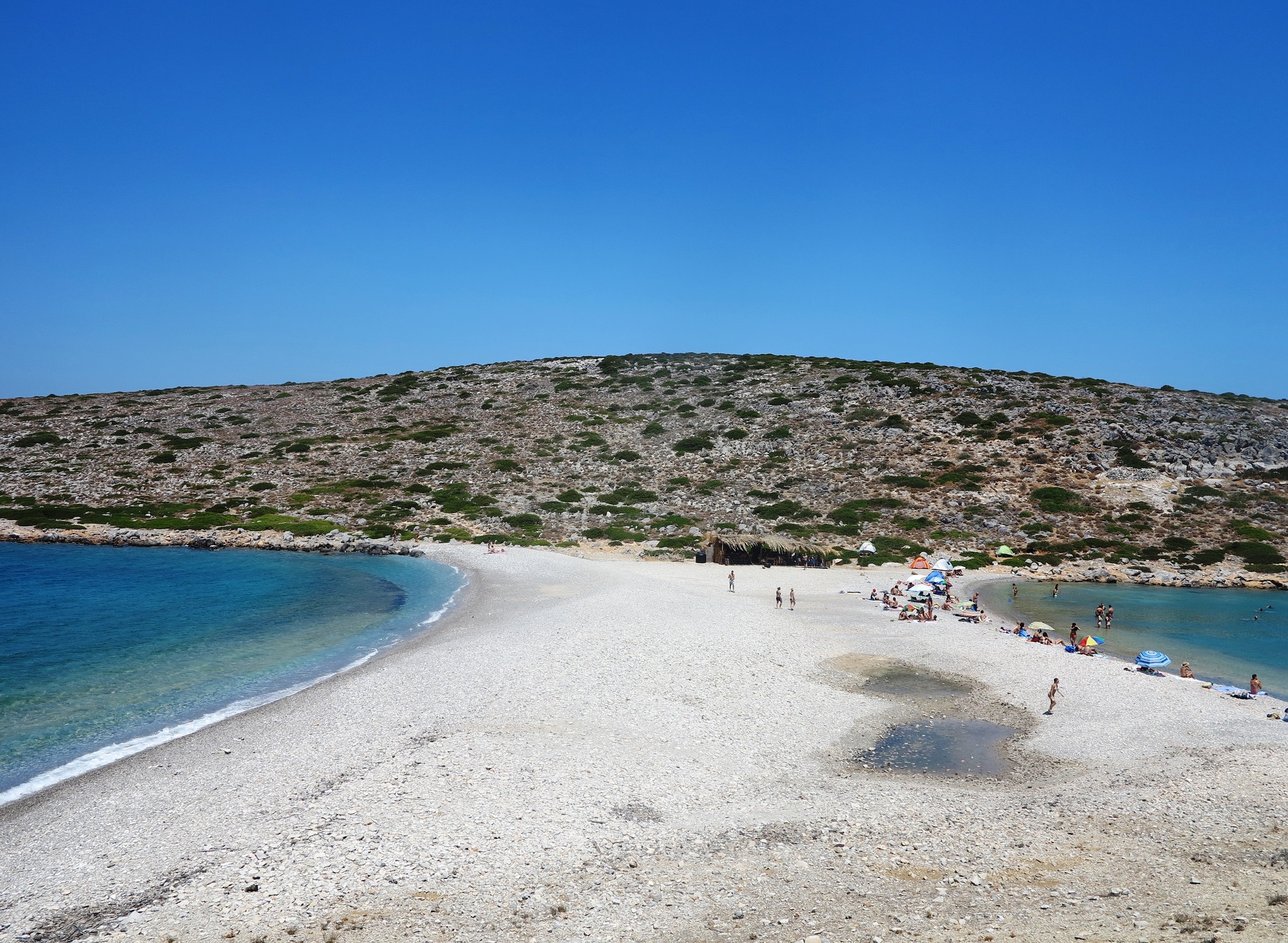 Koutsomyti is closer to Astypalaia, its beach on the southern part of the islet near the strait that separates it from its rocky neighbour, the islet of Tigani. It’s hard to miss, especially with its wooden structure on the coast, set up to serve Astypalaia’s as a watering area for their goats, which are often brought here to graze. The beach itself is pebbly, and while its appearance might be somewhat ordinary, the waters are a deep shade of blue and crystal clear, offering a unique ambiance distinct from any other part of the island. If underwater adventures appeal to you, make sure to come equipped with a snorkel and mask.