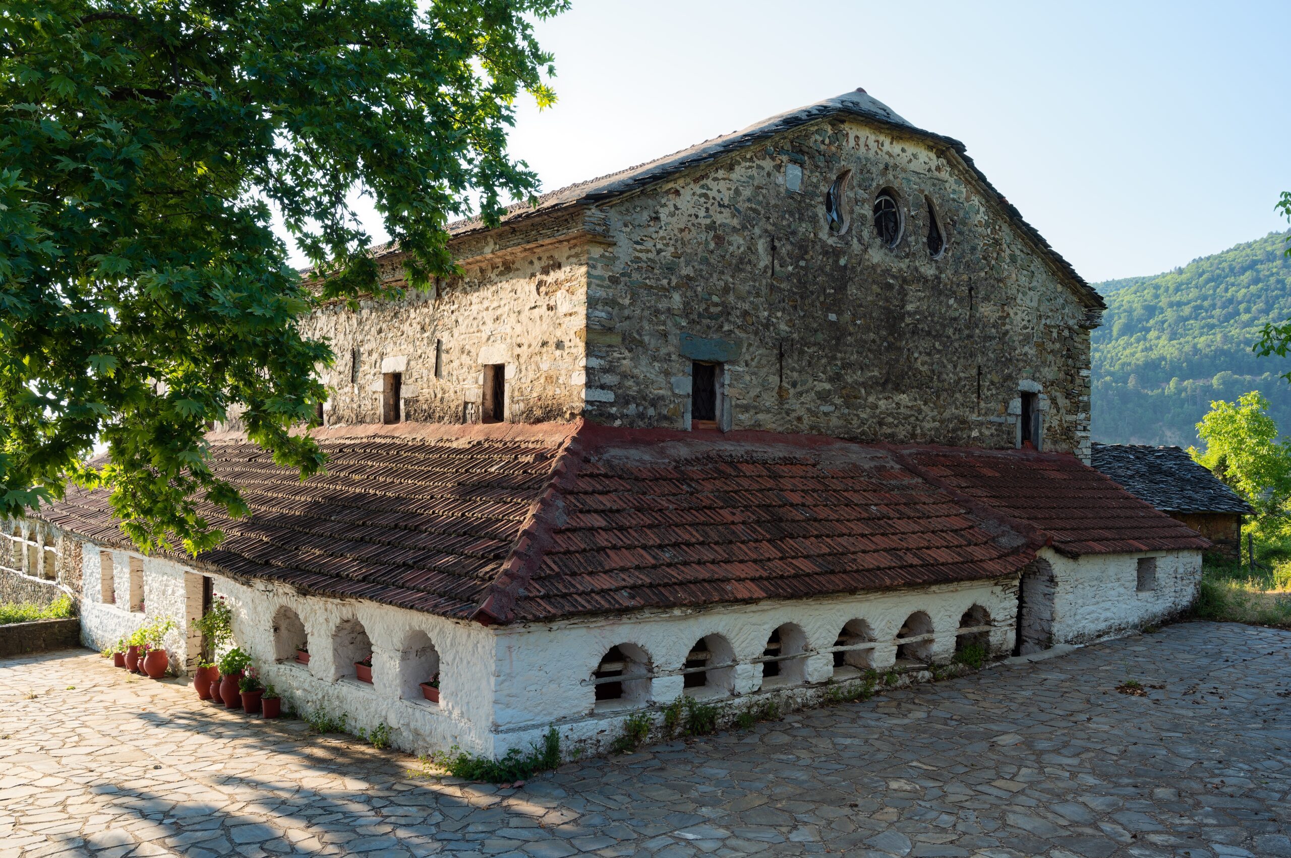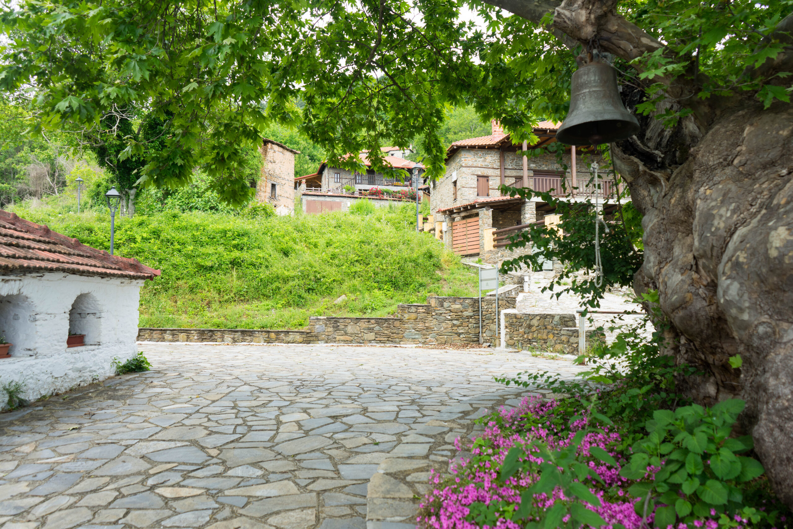A notable architectural trademark of the village is the Church of the Dormition of the Theotokos, a three-aisled basilica with a women’s gallery, dating back to 1862. The church was built thanks to Patriarch Callinicus of Alexandria, who originated from Skotina and is honoured with a bust nearby. Close to the church is a magnificent ancient plane tree, its hollow trunk large enough to resemble a doorway, along with another church, the Church of Saint Athanasius, which you’ll be lucky to find open to admire its exceptional frescoes.