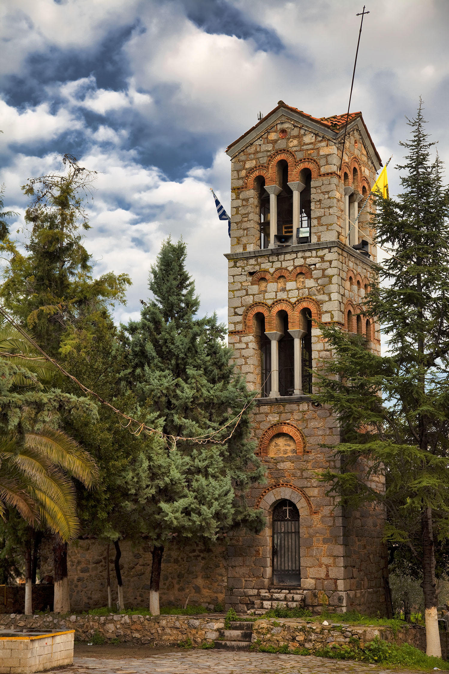 The church now functions as the parish church of Orchomenos and is surrounded by beautifully landscaped grounds. We were also impressed by the interior decoration of the church and its bell tower, which is a recent addition, dating back to 1939 when the church was declared a monument. It was built in such a way as to respect the Byzantine architectural heritage. The Byzantine sundial that is carved vertically into the southern wall of the church is particularly interesting.