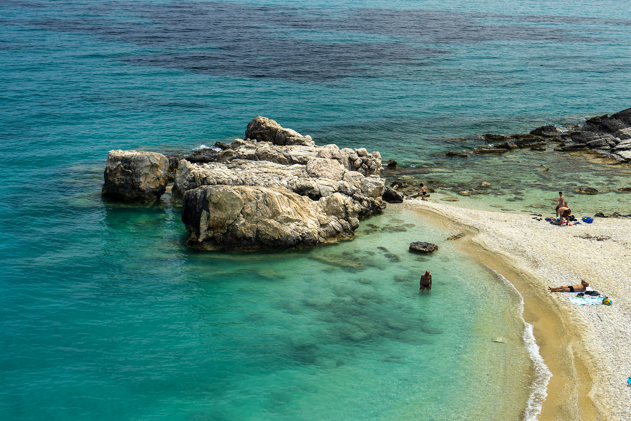 Upon reaching it, you’ll see that it was well worth the effort. The beach leaves a strikingly white impression, thanks to its gleaming pebbles, and also has beautiful, low-height rocky ends that those who love diving can easily climb. At the same time, these formations sculpt a wonderful seabed ideal for snorkelling.