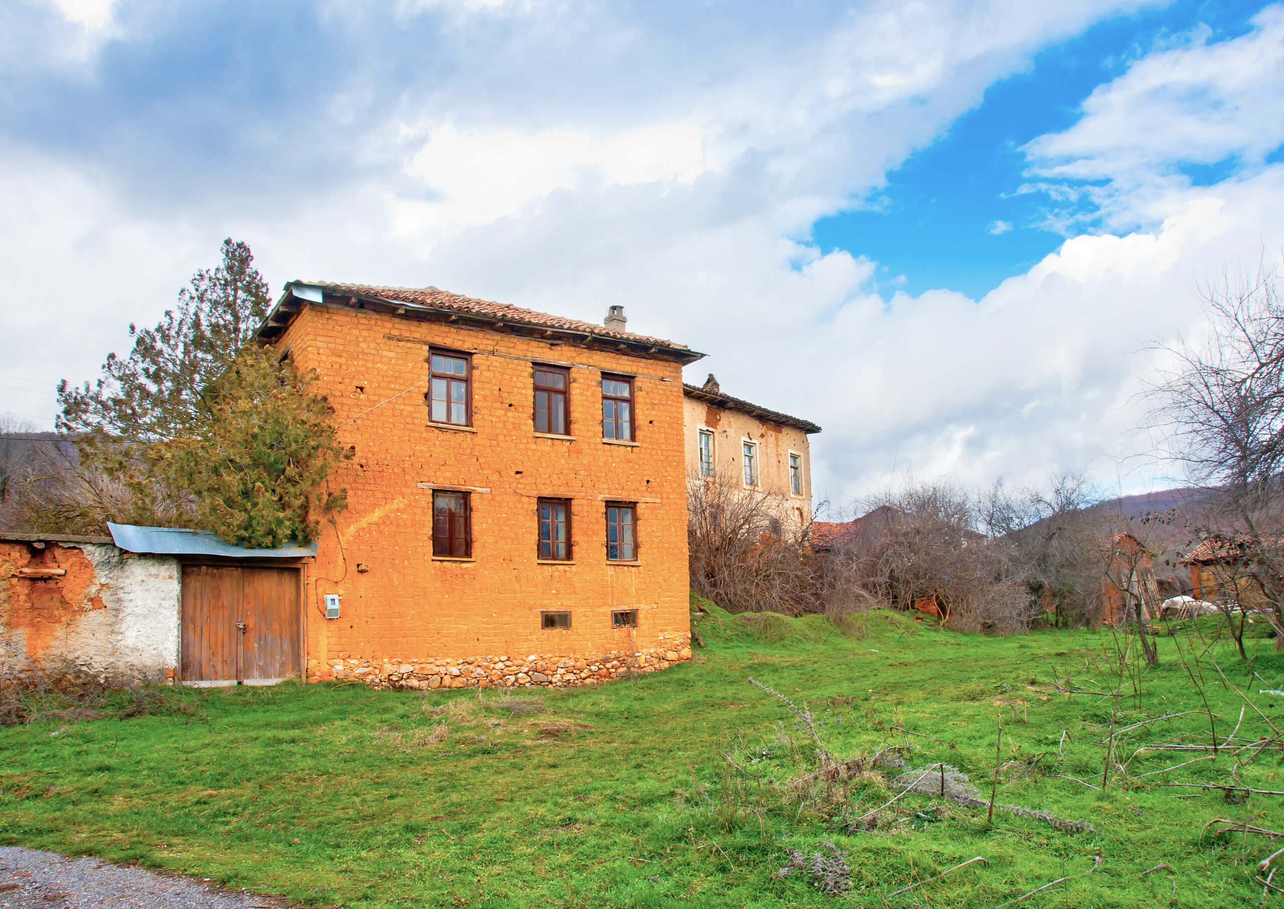 From Kastoria it took us less than 30 minutes to reach Gavros. The first sight is breathtaking, as just off the main road we see the red houses. Nearby, a shepherd and his animals are the only living presences in the village. Dimitrios Dalipis, who fought for the Macedonian cause, came from Gavros and his statue dominates the entrance to the opposite New Settlement, as the newer village of Korestia, built in the 1970s, is called. This is where those who decided to stay in the area settled. A few brick houses still stand. Some of the houses have been converted into haylofts or stables.