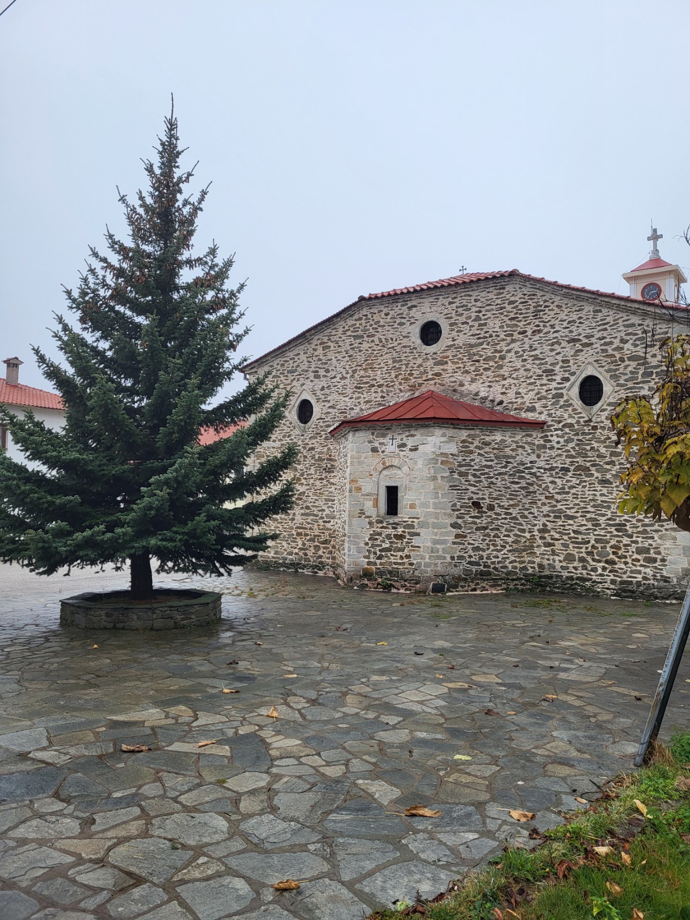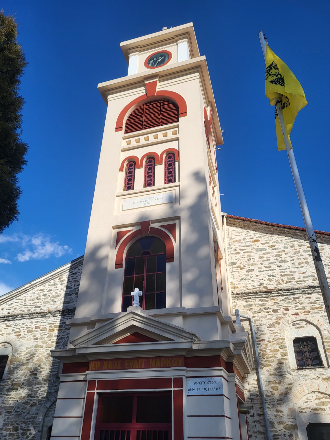 A bit further in and built at the village’s center, the Church of Agios Mark is the largest in Vlasti, standing out from a distance thanks to its tall frontal bell tower, a later addition made in 1930 based on designs by Dimitrios Petsilas, a Vlasti-born architect. Constructed in 1856, as indicated by a now-lost inscription, the church was a donation from the Louvriotis brothers and suffered almost irreparable damage during the Occupation and Civil War years until it was fully renovated in 1959. However, the church’s unfortunate history did not end there; in 1993, it was burnt to the ground by fire, leading to a lengthy restoration completed in 1997. Today, years after the disaster, the church is functional and fully accessible, serving as a living testament to the area’s rich history.