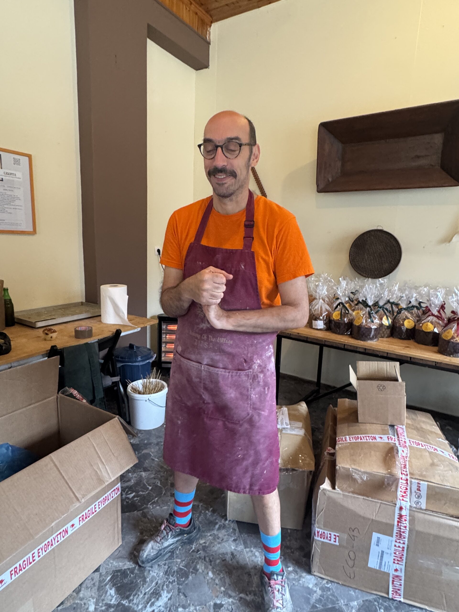 Anna, Kosta and their friends also host occasional events and cooking workshops, with the help of Kostas’ mother and other locals. Anna too, who met her husband while holidaying there for a few days with her sister, was deeply drawn to settling in Zitsa because of its peacefulness, friendliness, simplicity and beauty, and she says her friends from the US love finding refuge there. The appeal is significant, as Rea Kapetanaki, a Greek who although raised in Athens spent a significant part of her life living in the UK, and has now moved to the village for a simpler life, told me. “I didn’t expect to be so busy!” she laughs, holding bags full of freshly made panettone, which she helped make. “People in the city seem quite – agitated – all the time, and I wanted a quieter pace, and after moving here I realized there is so much life and so much to do, but there’s also nature, for long walks and swims, and quiet coffees in the village square.”