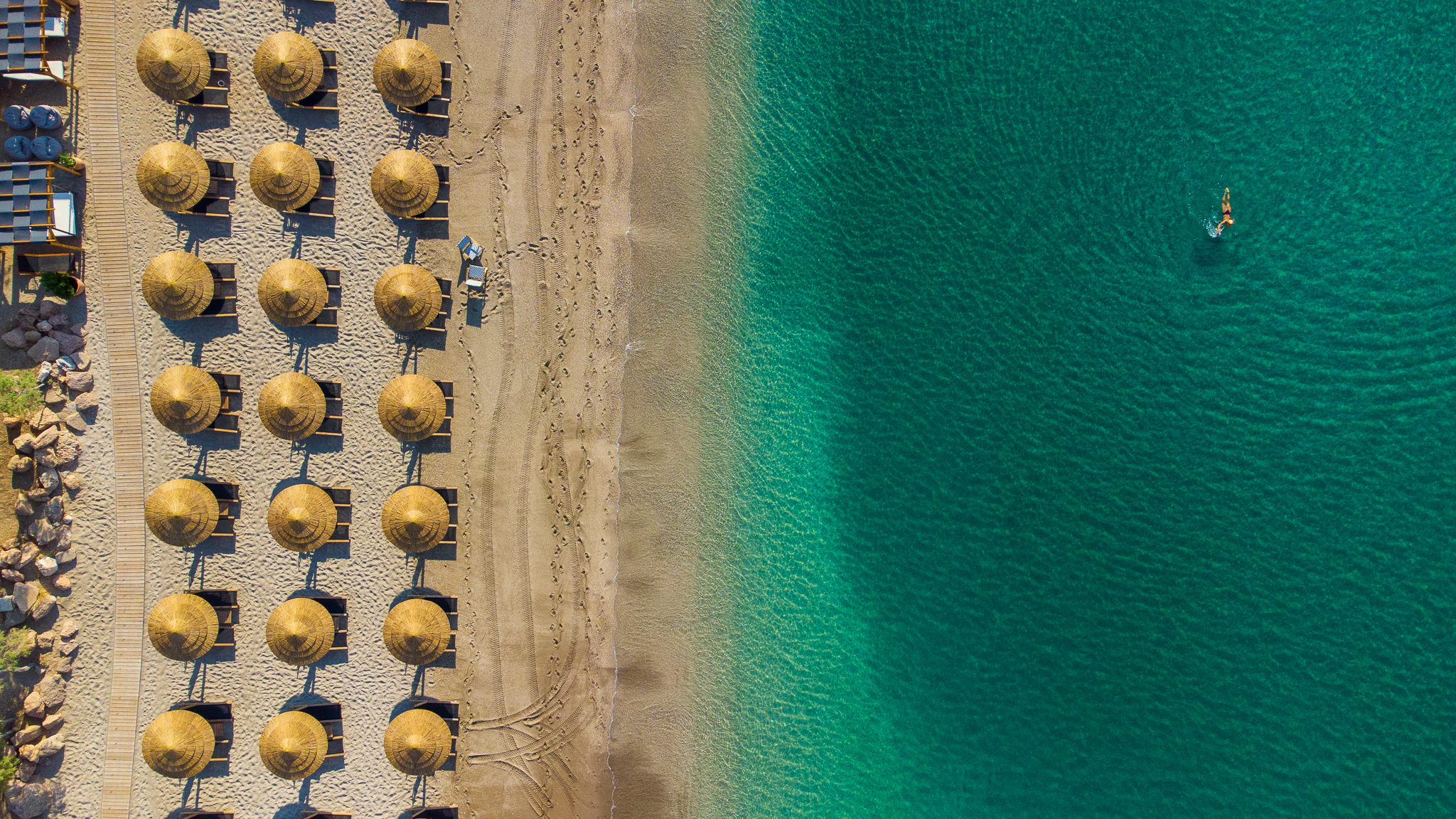 The wide expanse of Vouliagmeni Beach ensures that you will never feel cramped or overwhelmed: 600 brand new, luxurious wooden umbrellas and more than 1,200 new, luxurious wooden sunbeds can accommodate up to 7,000 visitors per day. Most importantly, however, especially for those arriving at the beach with young children, you will feel truly safe both in terms of hygiene and cleanliness and in terms of professional surveillance throughout the beach. Two experienced lifeguards and a fully equipped medical centre provide first aid in case of emergency and ensure safety for all visitors.