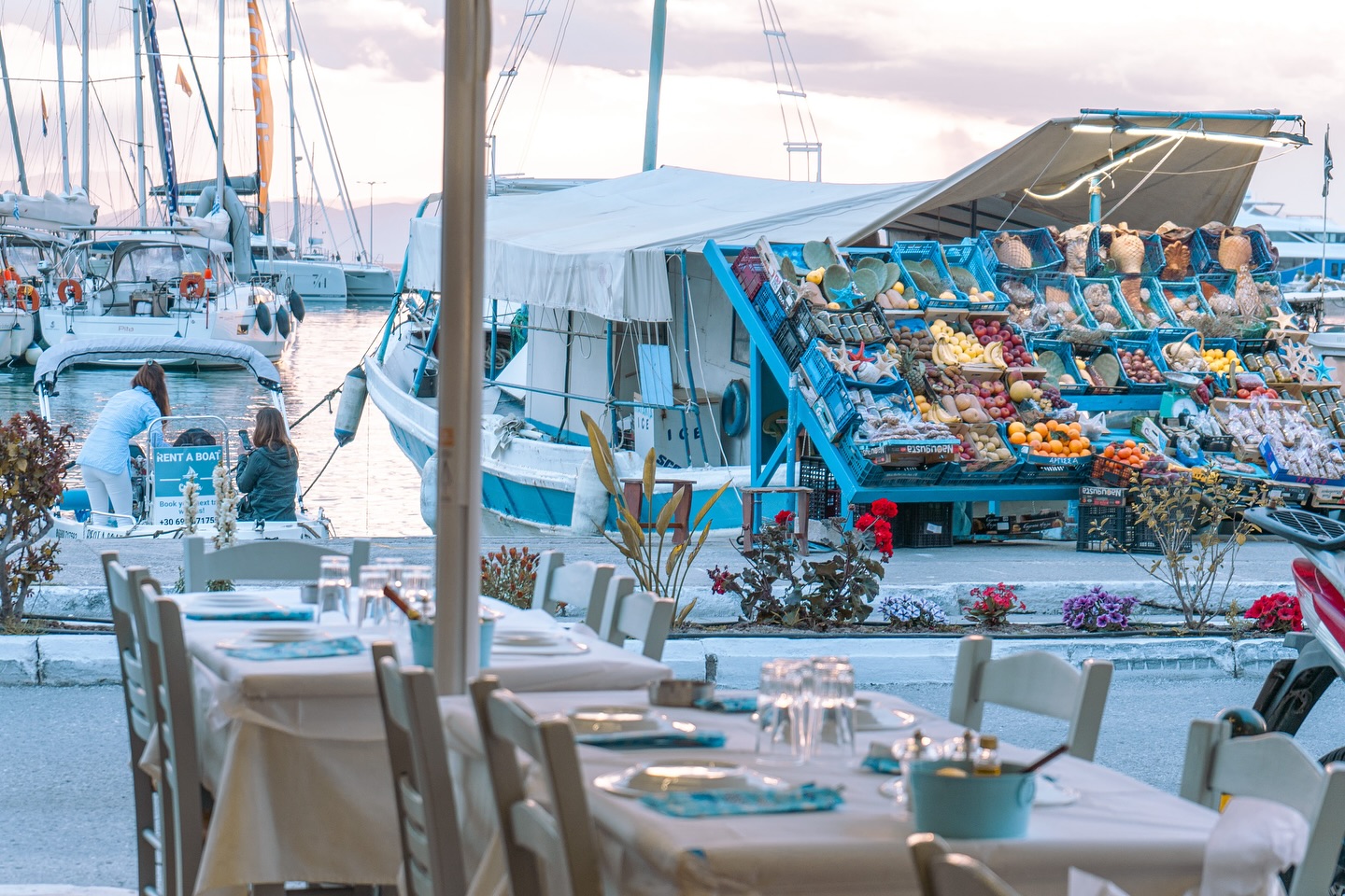 We walked the length of it, attuned to the hum of the fish market where restaurateurs and locals rush in early for the day’s catch. We paused at the outdoor fruit and vegetable stalls, bright with fresh produce, then chose our first coffee of the day directly across the street, at the traditional coffeehouses along the promenade.
